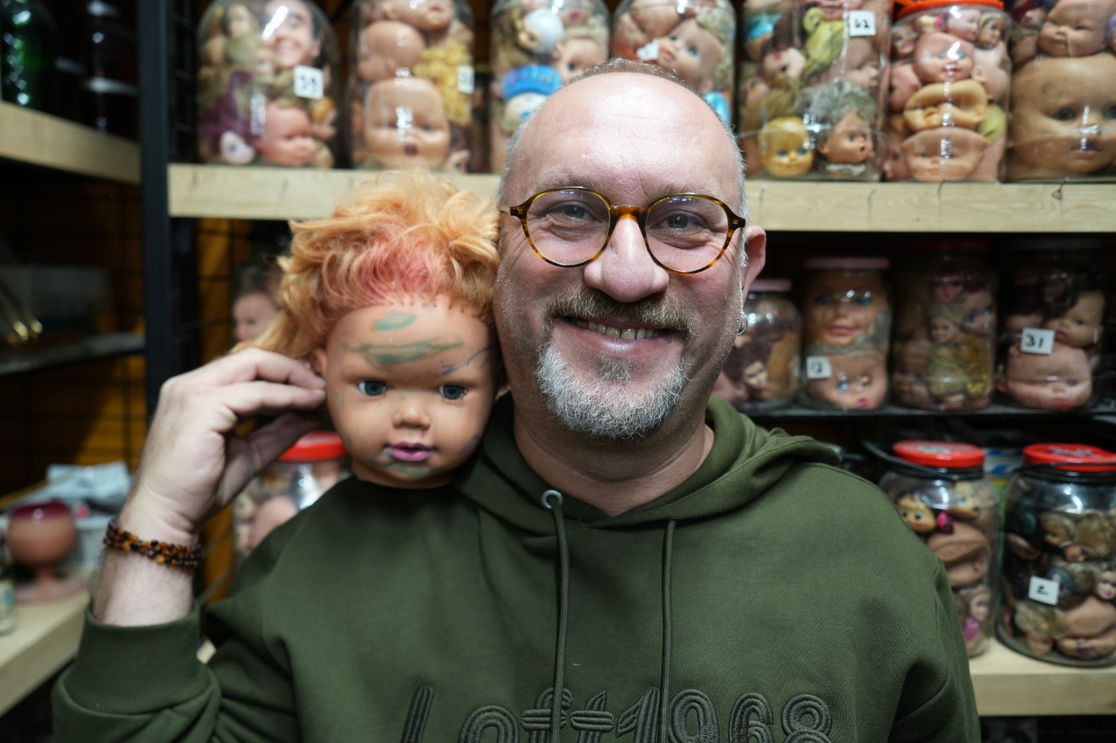 Kocaeli’nin İzmit ilçesinde bulunan antika dükkânı, alışılmışın dışında bir koleksiyona ev sahipliği yapıyor. Antikacı Hamdi Dinibütünoğlu, yalnız yaşayan bir koleksiyonerden satın aldığı yaklaşık 5 bin adet oyuncak bebek kafasından oluşan sıra dışı arşivi kavanoz ve akvaryumlar içinde sergiliyor. Binlerce bebek kafası, bazı ziyaretçiler için ürkütücü bir tablo sunarken, kimileri için ise hayli dikkat çekici bir nostalji alanı oluşturuyor.
