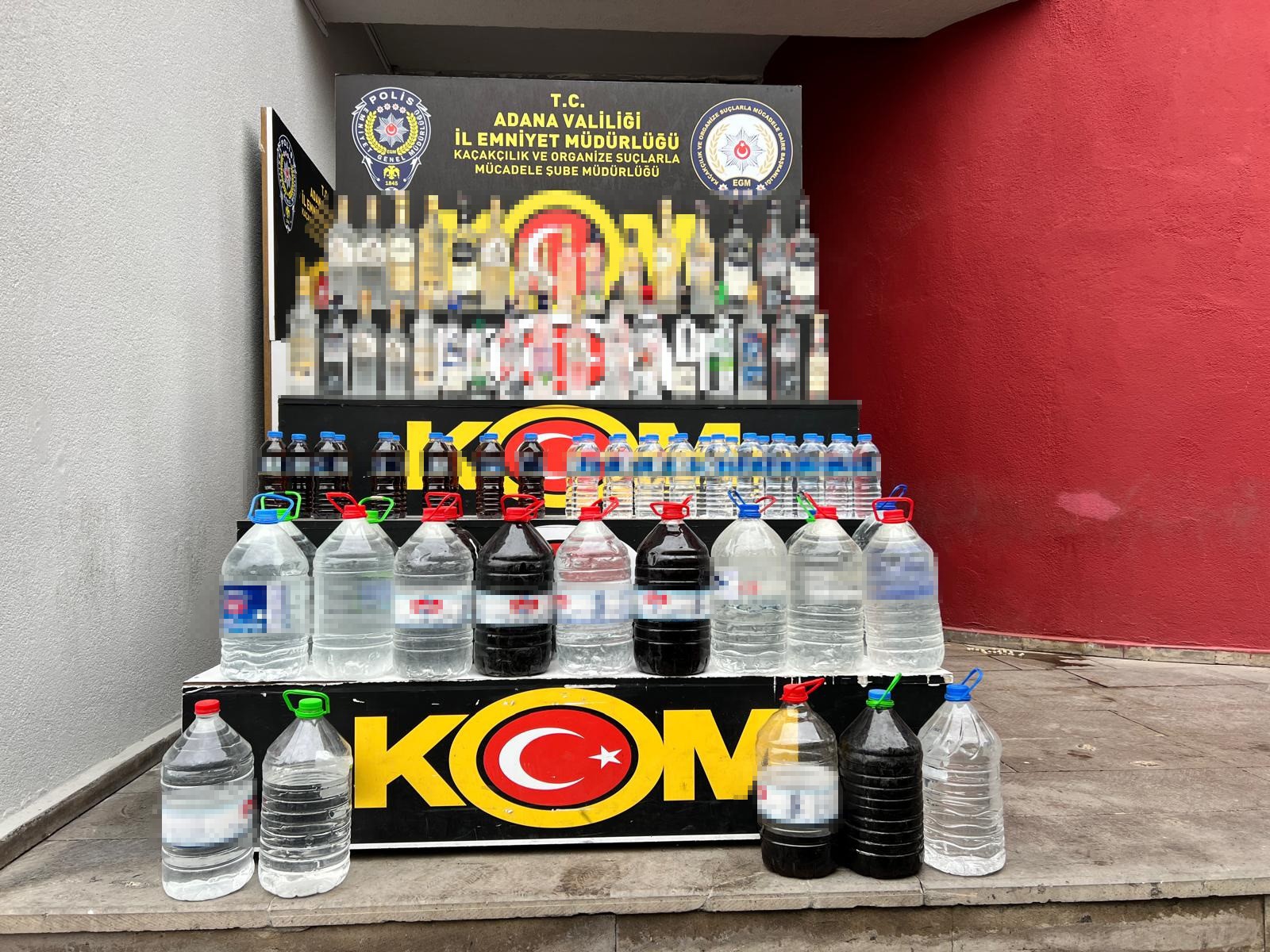 Yapılan çalışmaların ardından Adana genelinde birçok adrese eş zamanlı operasyon düzenlendi. Baskın yapılan evlerde, variller içerisinde üretilmiş alkol, üretimde kullanılan malzemeler ve çok sayıda pet şişe bulundu. Operasyonun ikinci ayağında ise, kaçak içkilerin satış noktası olduğu değerlendirilen tekel bayilerine baskınlar yapıldı. Bu adreslerde de bandrolsüz ve pet şişelere doldurulmuş çok sayıda sahte alkollü içki ele geçirildi.