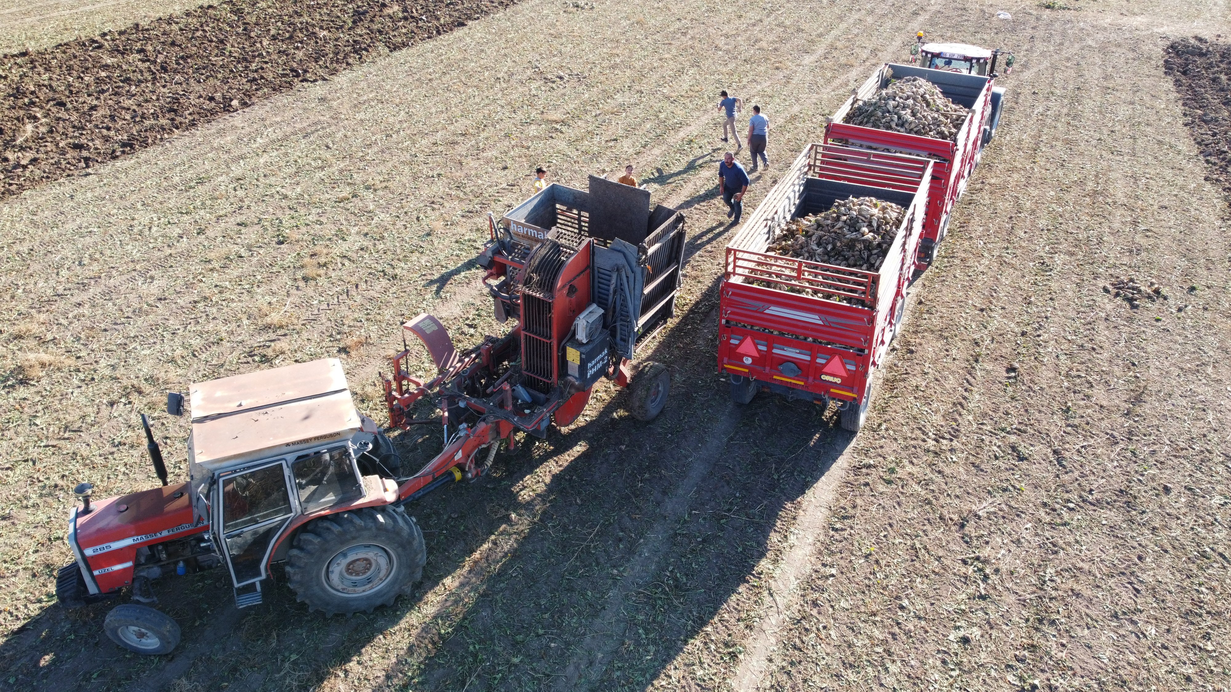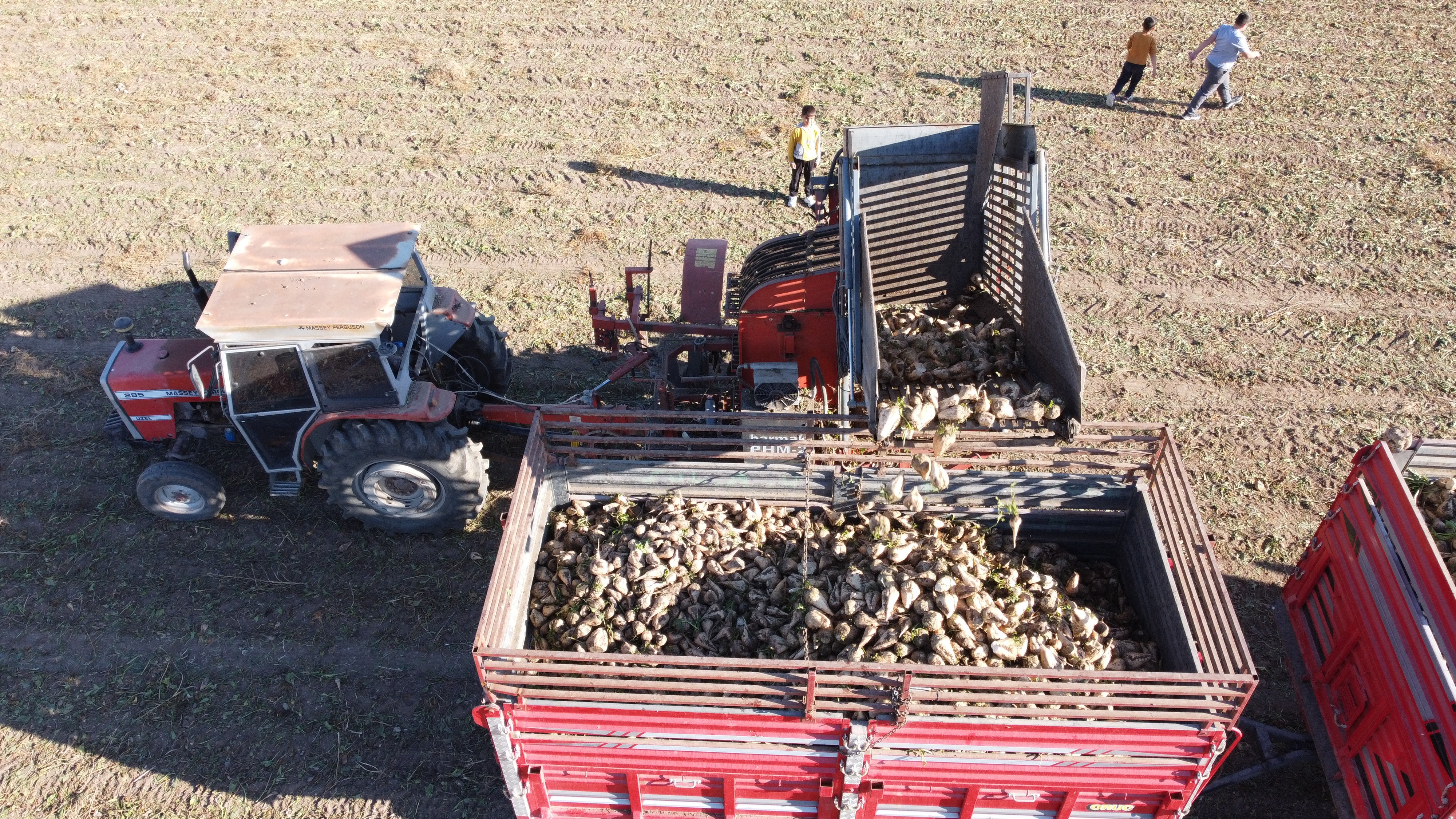 Hasat sürecinde pancarlar topraktan sökülerek römorklara yükleniyor ve bölgedeki şeker fabrikalarına taşınıyor. Tarlalardan yükselen toz bulutları, traktörlerin aralıksız çalışması ve hummalı söküm işlemleri dron görüntülerine de yansıdı. Çiftçiler için yoğun mesai sürerken, alın teriyle yetiştirilen pancarlar 6 aylık emeğin somut karşılığı olarak fabrikalara gönderilmeye devam ediyor.