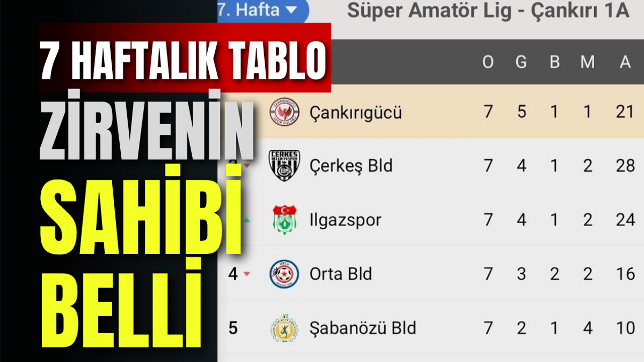 Süper Amatör Lig Çankırı 1A Grubu’nda 7. hafta karşılaşmalarının ardından oluşan puan durumu, ligdeki rekabetin seyrini ortaya koydu. Oynanan maçlar sonucunda Çankırıgücü, topladığı 16 puanla liderliğini sürdürdü.