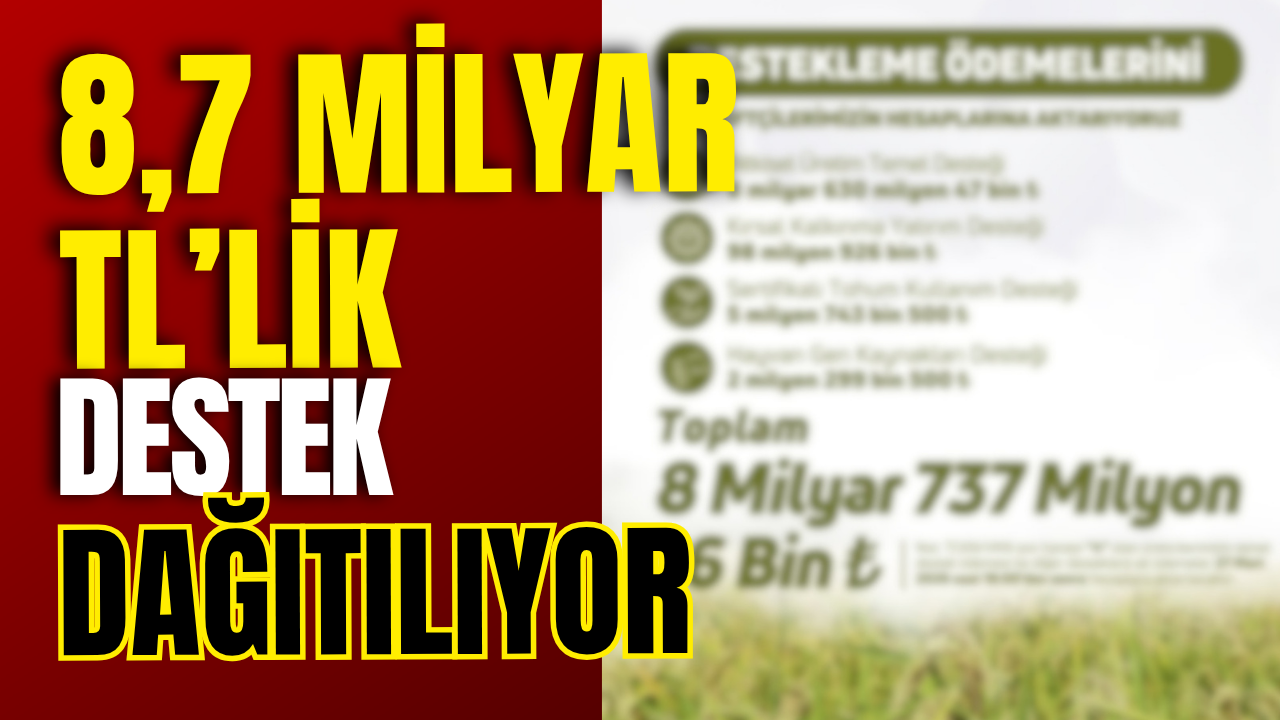 Yapılan bilgilendirmede, bitkisel üretim temel desteği kapsamında 8 milyar 630 milyon 47 bin lira ödeme yapılacağı belirtildi. Bunun yanı sıra kırsal kalkınma yatırım desteği için 98 milyon 926 bin lira, sertifikalı tohum kullanım desteği için 5 milyon 743 bin 500 lira ve hayvan gen kaynakları desteği için 2 milyon 299 bin 500 lira ödeme gerçekleştirileceği ifade edildi.