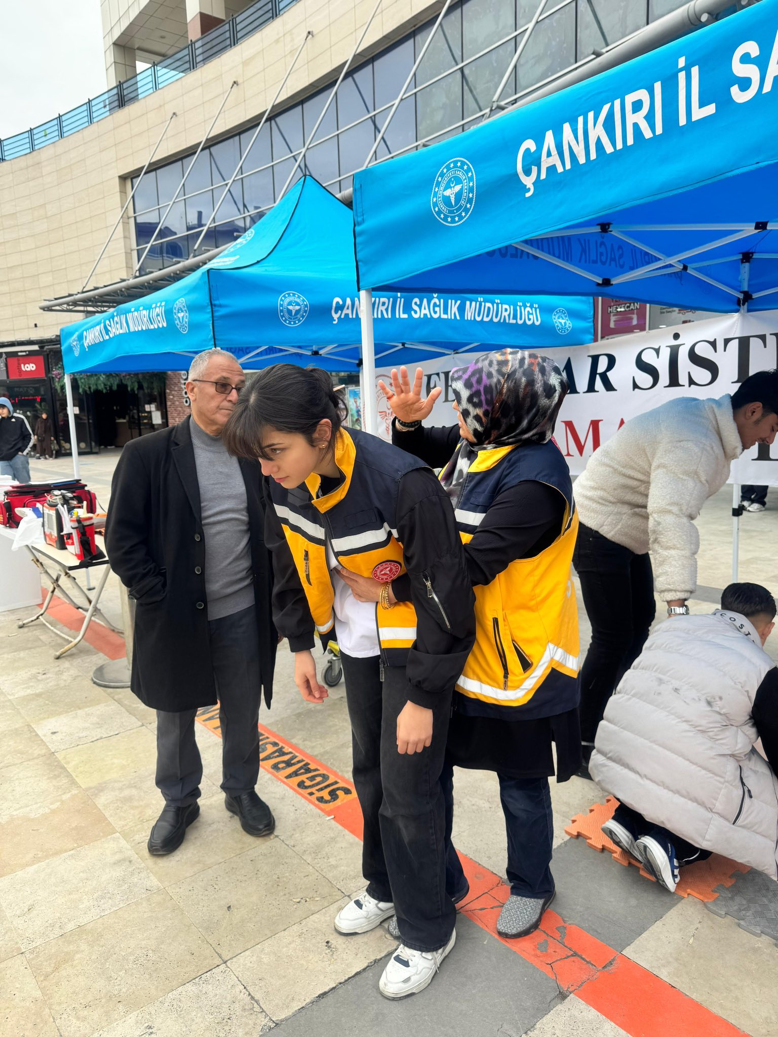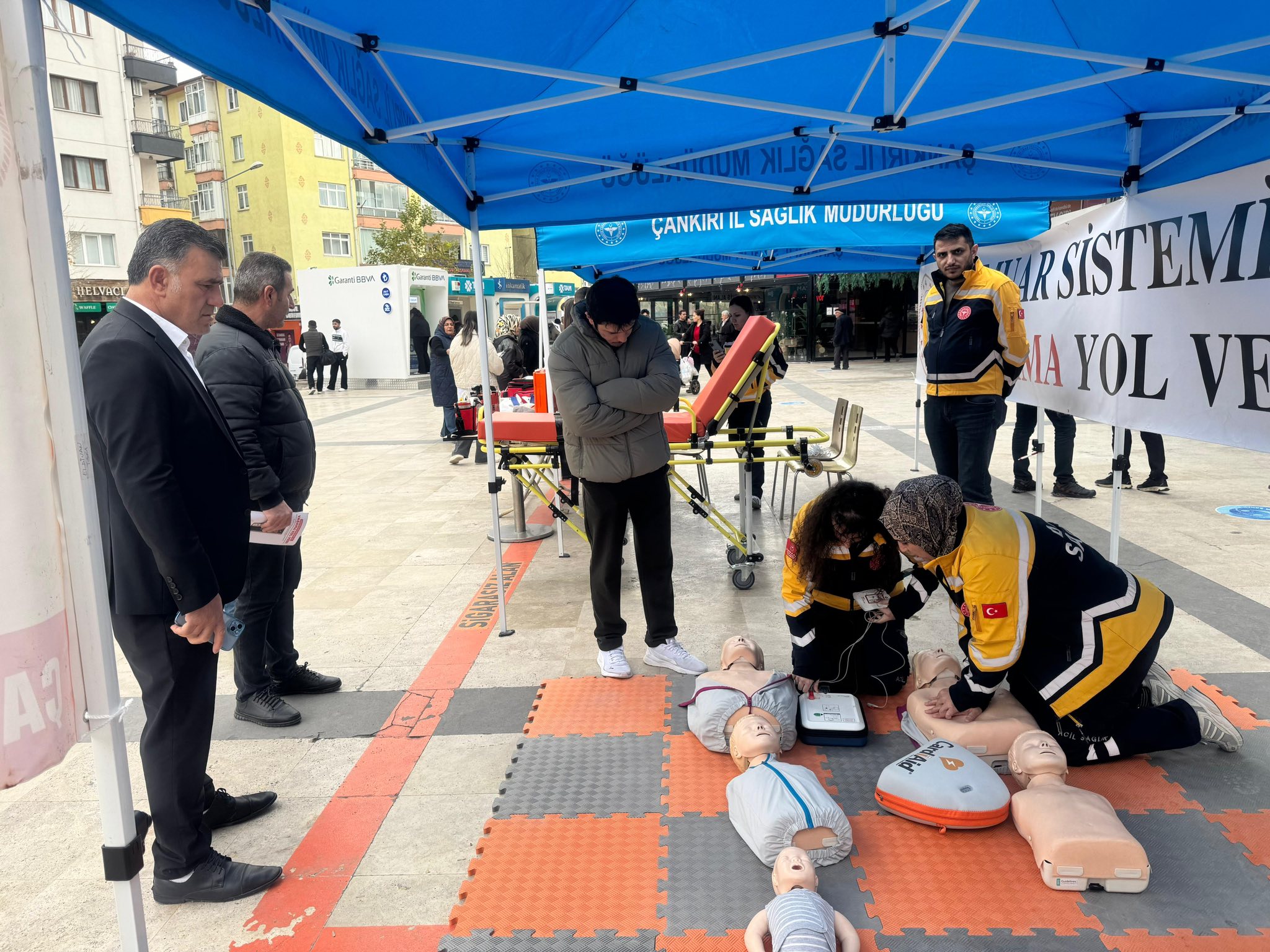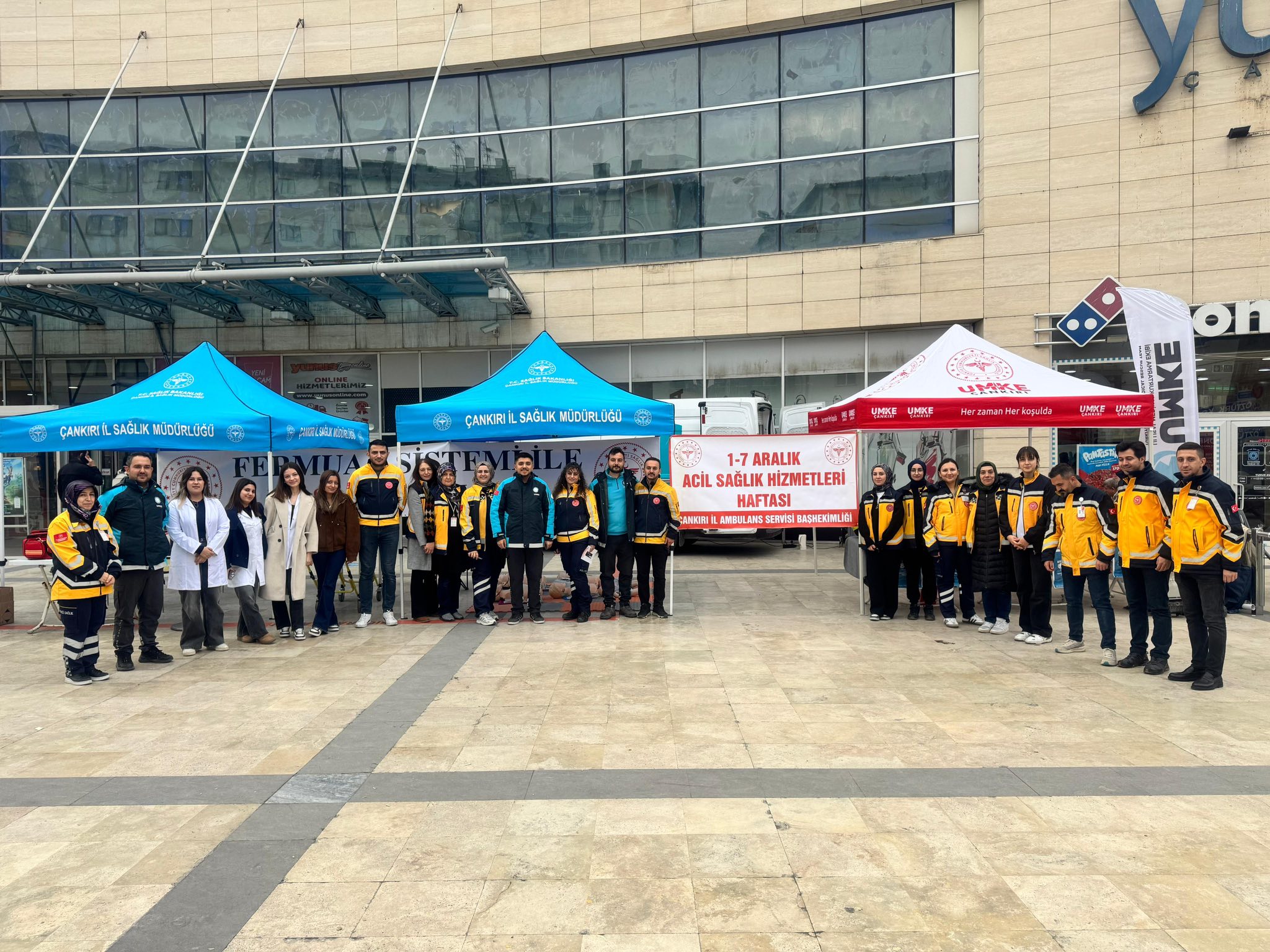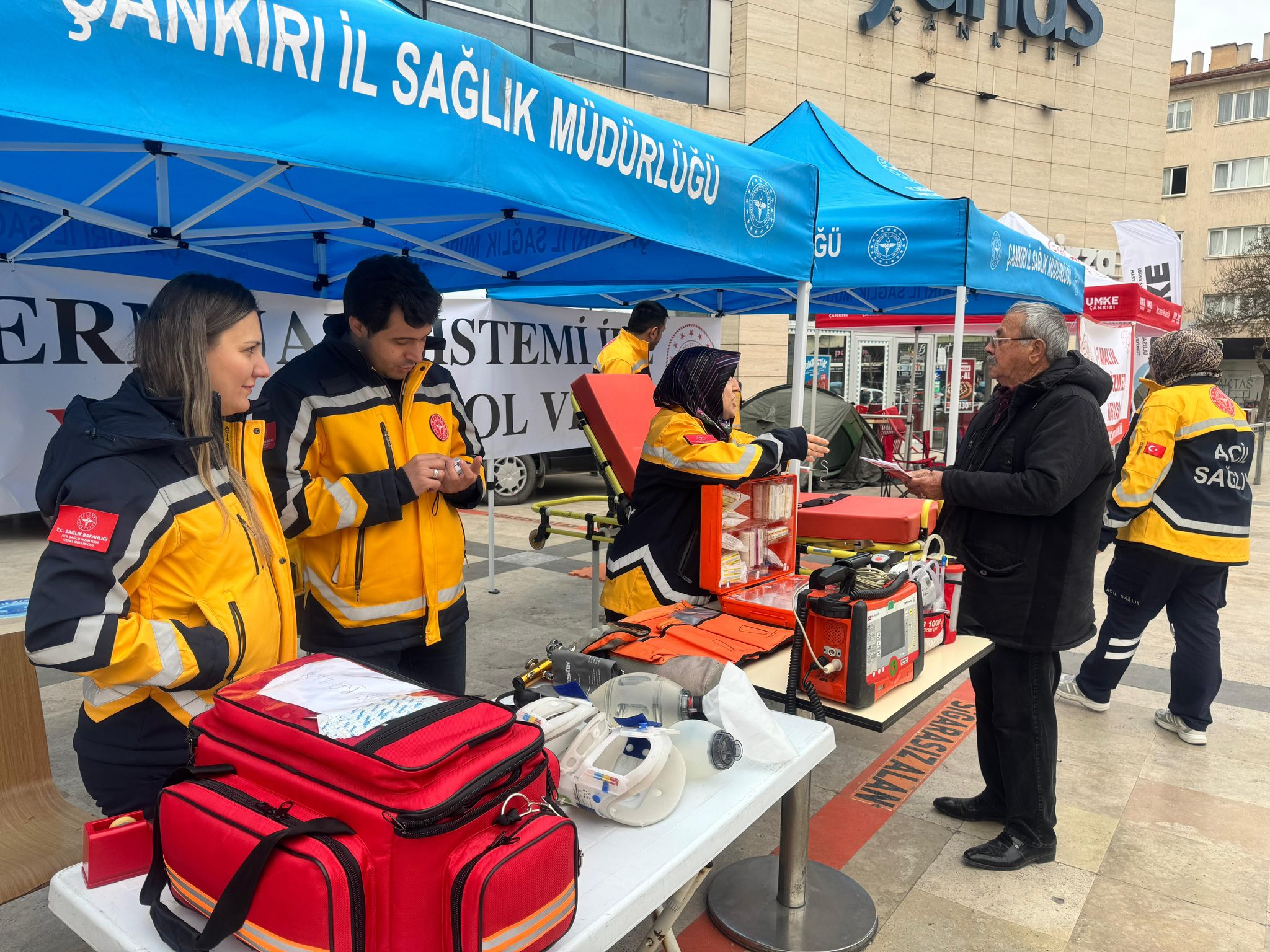 ÖZEL HABER/ Çankırı İl Sağlık Müdürlüğü, “1–7 Aralık Acil Sağlık Hizmetleri Haftası” kapsamında vatandaşların bilinç düzeyini artırmaya yönelik önemli bir farkındalık programına imza attı. Çankırı Yunus AVM önünde gerçekleştirilen etkinlikte, 112 Acil Sağlık Hizmetleri ekipleri ile UMKE personeli vatandaşlarla bir araya gelerek acil durumlarda uygulanması gereken temel adımları hem anlattı hem de uygulamalı olarak gösterdi.