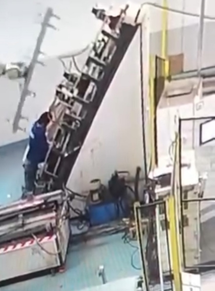 Olay anında işçinin bağırması üzerine çevredeki mesai arkadaşları hemen yardıma koştu. Ancak işçi, makineye sıkıştığı için uzun süre bulunduğu yerden çıkarılamadı. İşçiler kendi çabalarıyla arkadaşlarını kurtarmaya çalışırken yaşanan panik anları, saniye saniye görüntülendi.