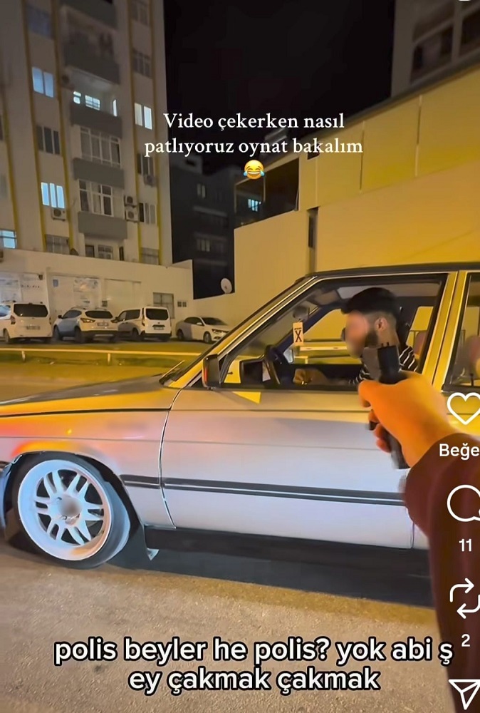 Gençlerin bu anları kayda aldığı sırada, kırmızı ışıkta durdukları noktaya Kozan İlçe Emniyet Müdürlüğü Asayiş Şube ekipleri müdahale etti. Polislerin elinde gerçek silah olduğunu gören gençler panikledi. Olayın ardından gençler, kullandıkları silahın oyuncak olduğunu belirterek durumu açıklamaya çalıştı.