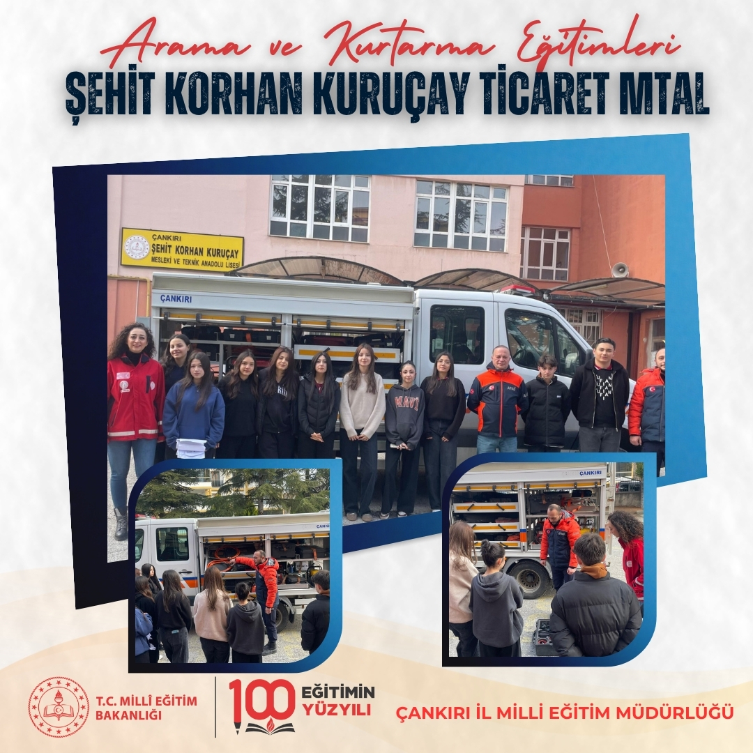 Çankırı’da afet bilincinin artırılması ve gençlerin arama-kurtarma faaliyetlerine yönelik farkındalıklarının güçlendirilmesi amacıyla önemli bir eğitim çalışmasına imza atıldı. Şehit Korhan Kuruçay Ticaret Mesleki ve Teknik Anadolu Lisesi’nde düzenlenen eğitim programında, Çankırı AFAD ekipleri Genç MEB AKUB üyesi öğrencilere yönelik kapsamlı bir arama kurtarma tanıtımı gerçekleştirdi.