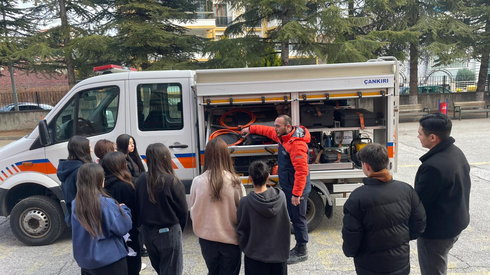 Eğitim kapsamında AFAD ekipleri, arama-kurtarma araçlarında bulunan teknik donanımlar ile afet ve acil durumlarda kullanılan ekipmanları öğrencilere detaylı şekilde anlattı. Öğrenciler, afet anlarında hayati önem taşıyan ekipmanların hangi durumlarda ve nasıl kullanıldığını uygulamalı anlatımlar eşliğinde öğrenme imkânı buldu. Bu sayede teorik bilginin yanı sıra sahaya yönelik pratik farkındalık da kazandırıldı.