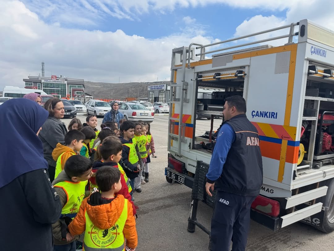 Çankırı’da 125. Yıl Anaokulu öğrencileri, Afet ve Acil Durum Yönetimi Başkanlığı (AFAD) birimini ziyaret ederek afet bilinci konusunda eğitim aldı.
