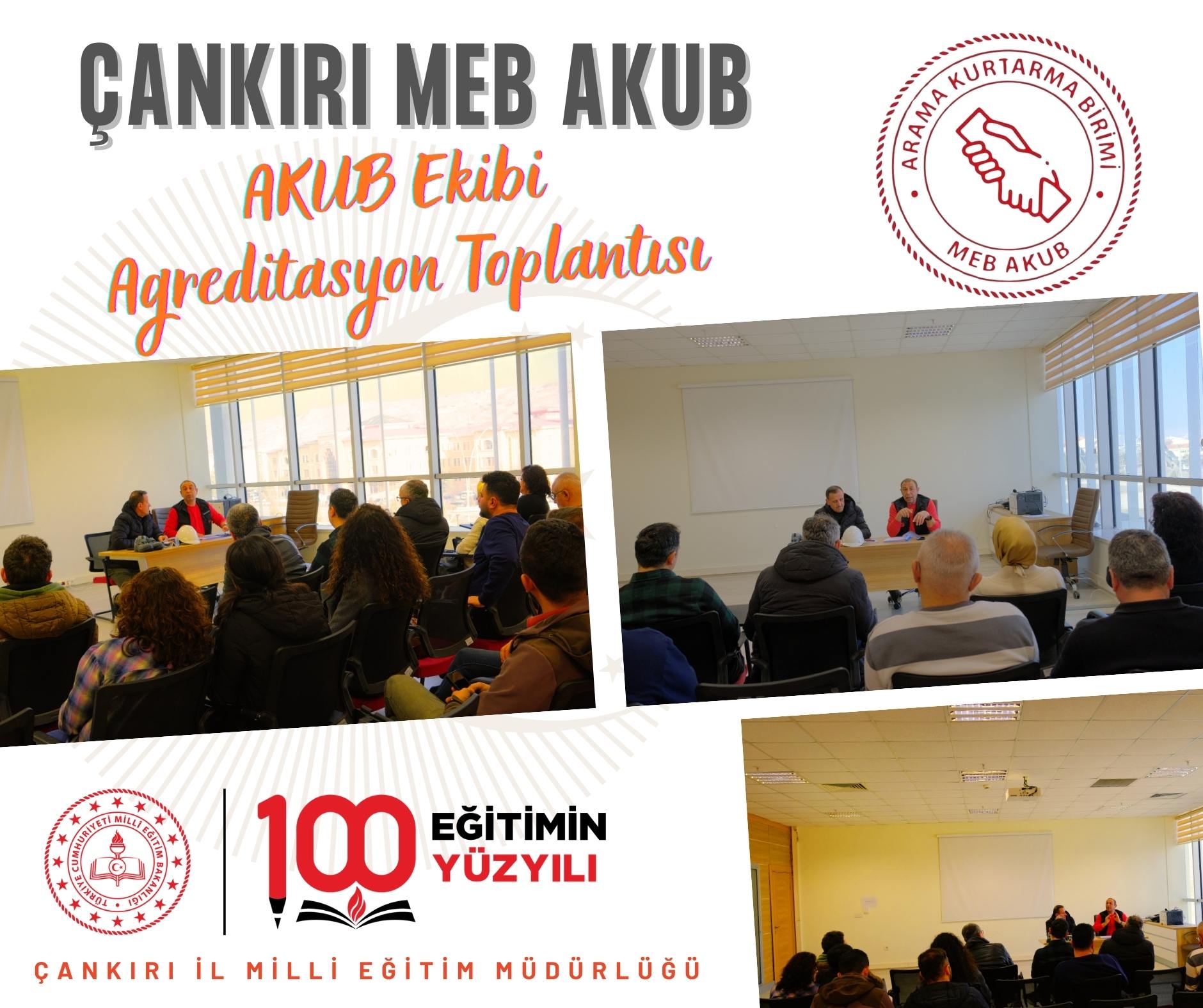Çankırı İl Millî Eğitim Müdürlüğü bünyesinde faaliyet gösteren MEB AKUB (Arama ve Kurtarma Birimi) Ekibi, 06 Ocak 2026 tarihinde İl Millî Eğitim Müdürlüğü toplantı salonunda düzenlenen toplantıda bir araya geldi. Toplantı, ekip üyelerinin akreditasyon eğitimi süreci hakkında bilgilendirilmesi ve önümüzdeki dönemde yürütülecek çalışmaların değerlendirilmesi amacıyla gerçekleştirildi.