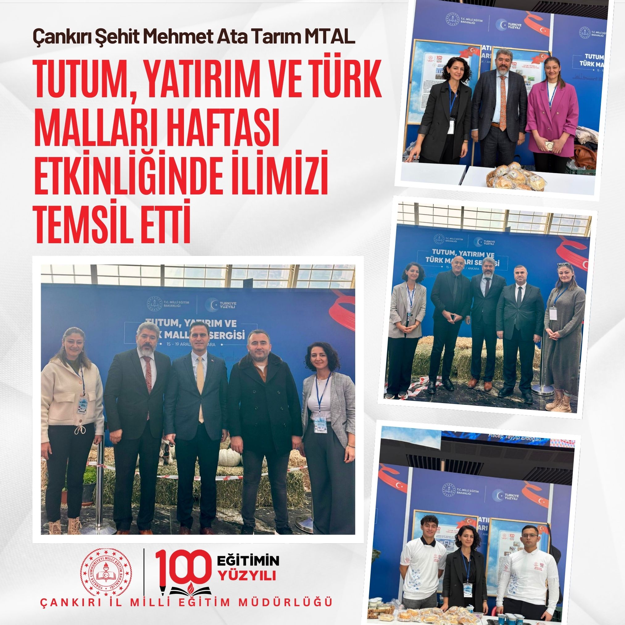 Tutum, Yatırım ve Türk Malları Haftası kapsamında Ankara’da düzenlenen etkinliklerde Çankırı’yı Şehit Mehmet Ata Tarım Mesleki ve Teknik Anadolu Lisesi temsil etti. Mesleki ve Teknik Eğitim Genel Müdürlüğü ile Ankara İl Millî Eğitim Müdürlüğü iş birliğinde 12–18 Aralık tarihleri arasında gerçekleştirilen organizasyon, Türkiye genelinden meslek liselerini bir araya getirdi.