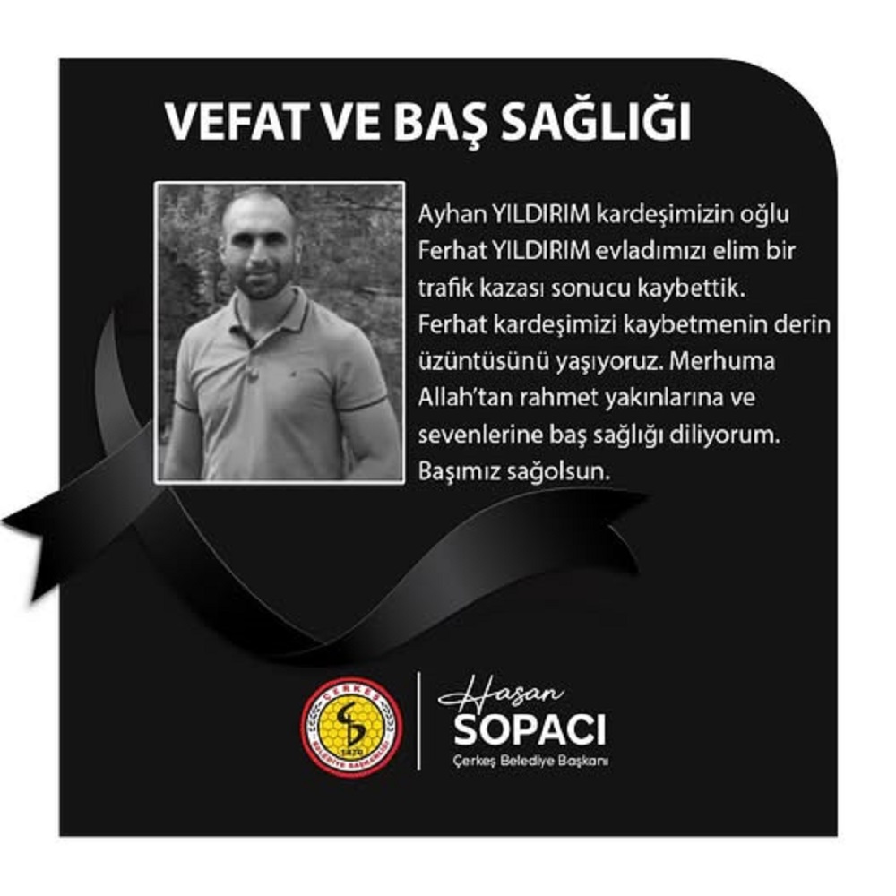 “Ayhan Yıldırım kardeşimizin oğlu Ferhat Yıldırım evladımızı elim bir trafik kazası sonucu kaybettik. Ferhat kardeşimizi kaybetmenin derin üzüntüsünü yaşıyoruz. Merhuma Allah’tan rahmet, yakınlarına ve sevenlerine başsağlığı diliyorum. Başımız sağ olsun.”