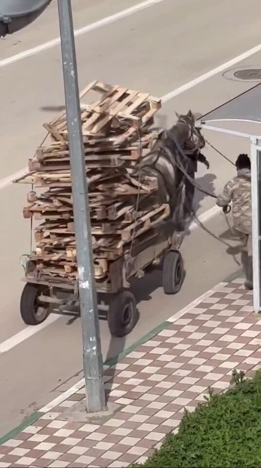 Bursa’nın Karacabey ilçesinde bir kişi, at arabasına aşırı miktarda palet yükleyince sosyal medyada tepkilere neden oldu. Kimliği henüz öğrenilemeyen şahıs, at arabasına kat kat palet yükledi. Aşırı yük nedeniyle at, güçlükle ilerleyebildi ve dengesini sağlamakta zorlandı.