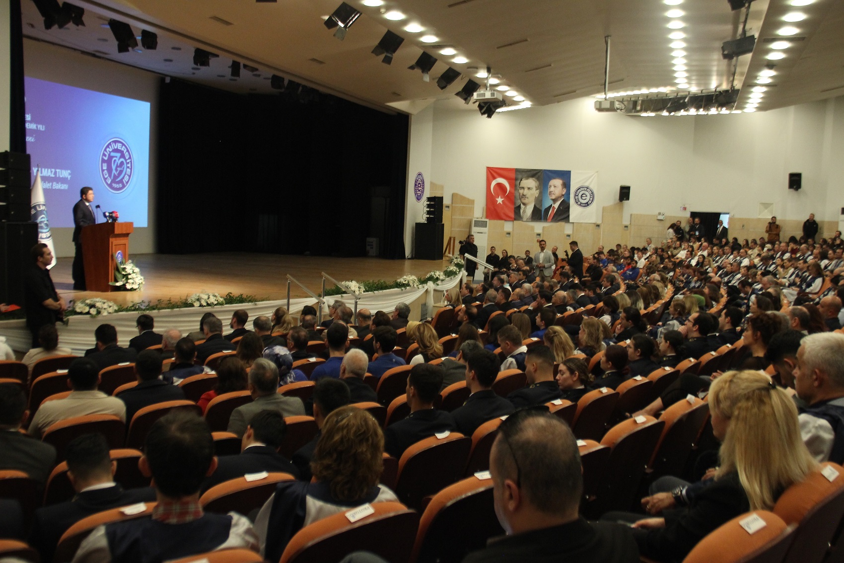 Ege Üniversitesi'nde (EÜ) 2025–2026 akademik yılı açılış töreni gerçekleştirildi. EÜ Prof. Dr. Yusuf Vardar MÖTBE Kültür Merkezi’ndeki törene Adalet Bakanı Yılmaz Tunç, İzmir Valisi Süleyman Elban, EÜ Rektörü Prof. Dr. Necdet Budak, akademisyenler ve öğrenciler katıldı. Etkinlik halk oyunları gösterisiyle başladı, ardından EÜ Medya Uygulama ve Araştırma Merkezi tarafından hazırlanan tanıtım filmi izlendi.