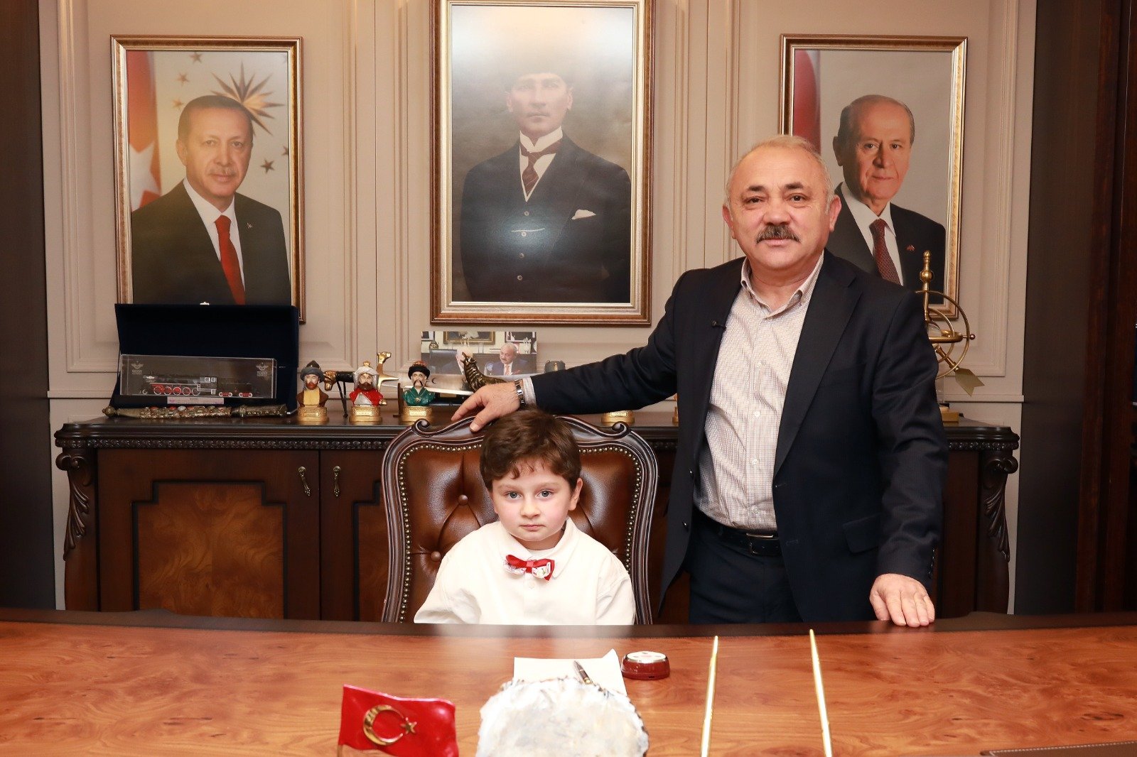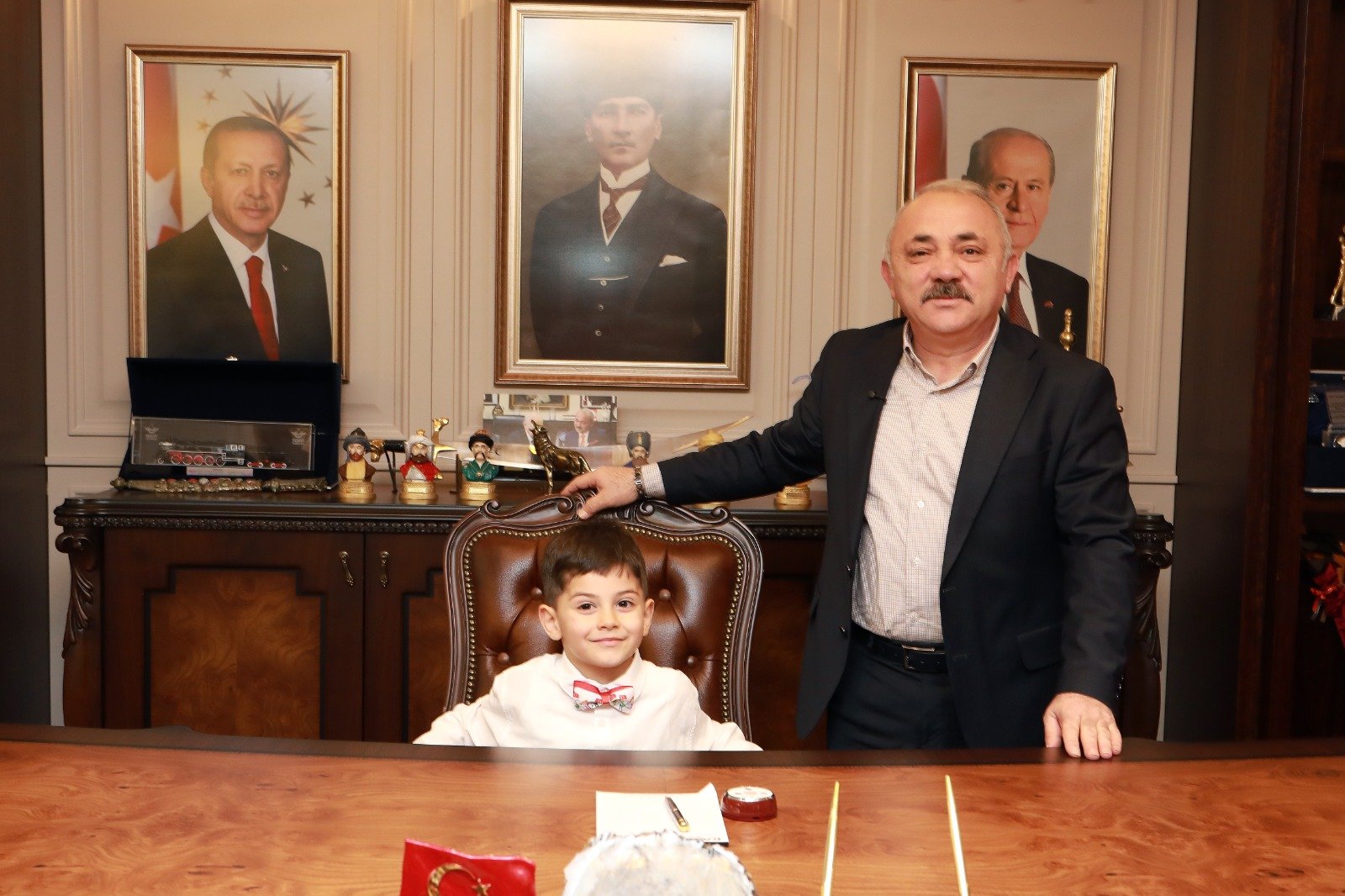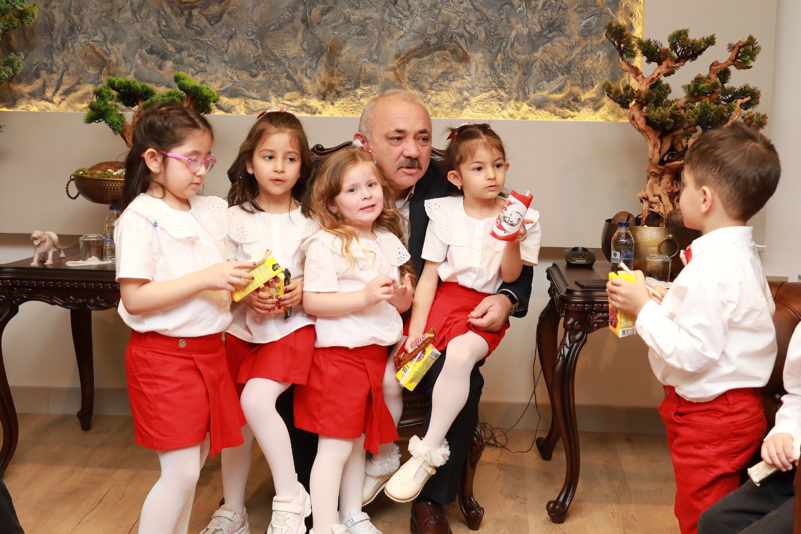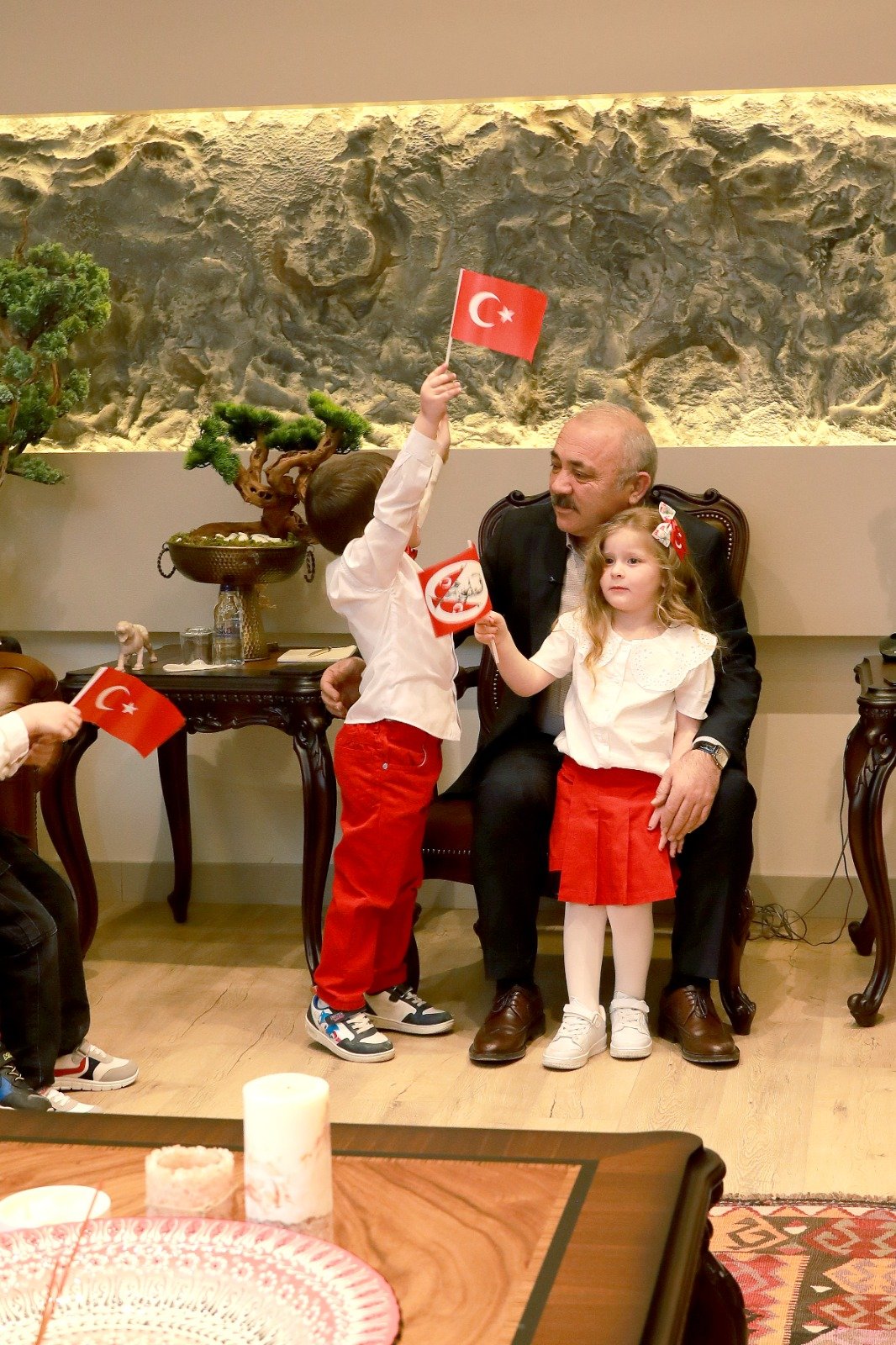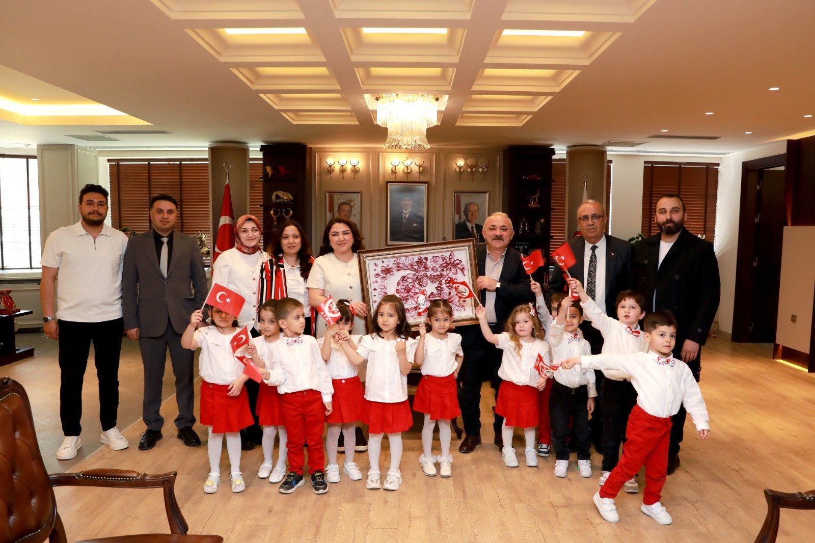 Ziyaret sırasında belediye binasında bayram coşkusu yaşanırken, minik öğrenciler ellerinde Türk bayraklarıyla makam odasını adeta bir kutlama alanına çevirdi. Çocukların Başkan Esen’e gösterdiği sevgi dolu anlar dikkat çekerken, ziyaret boyunca neşeli ve renkli görüntüler oluştu.