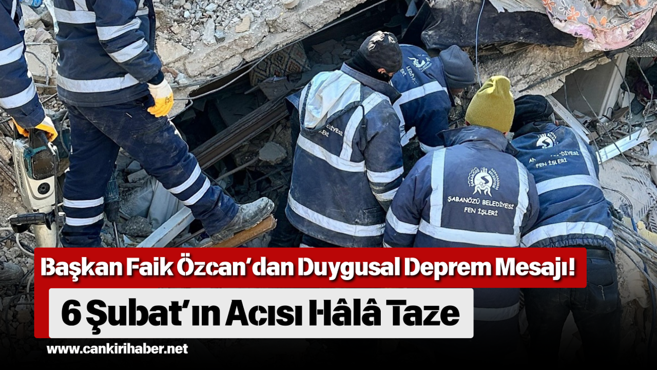 ÖZEL HABER/6 Şubat 2023 tarihinde meydana gelen ve “asrın felaketi” olarak nitelendirilen büyük depremlerin yıl dönümünde, Şabanözü Belediye Başkanı Faik Özcan anlamlı bir mesaj yayımladı. Depremde hayatını kaybeden vatandaşları rahmetle anan Başkan Özcan, yaşanan acının milletin hafızasında derin izler bıraktığını vurguladı.