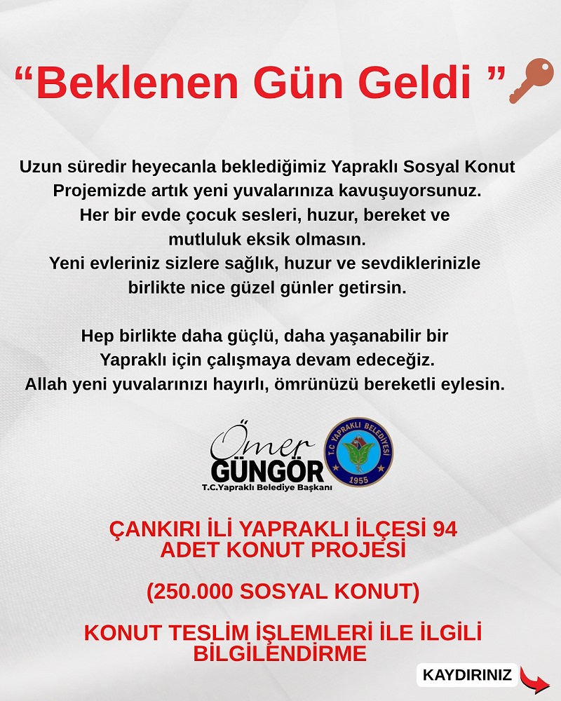 Yapraklı Belediye Başkanı Ömer Güngör, konut teslim süreciyle ilgili yaptığı açıklamada şu ifadeleri kullandı: