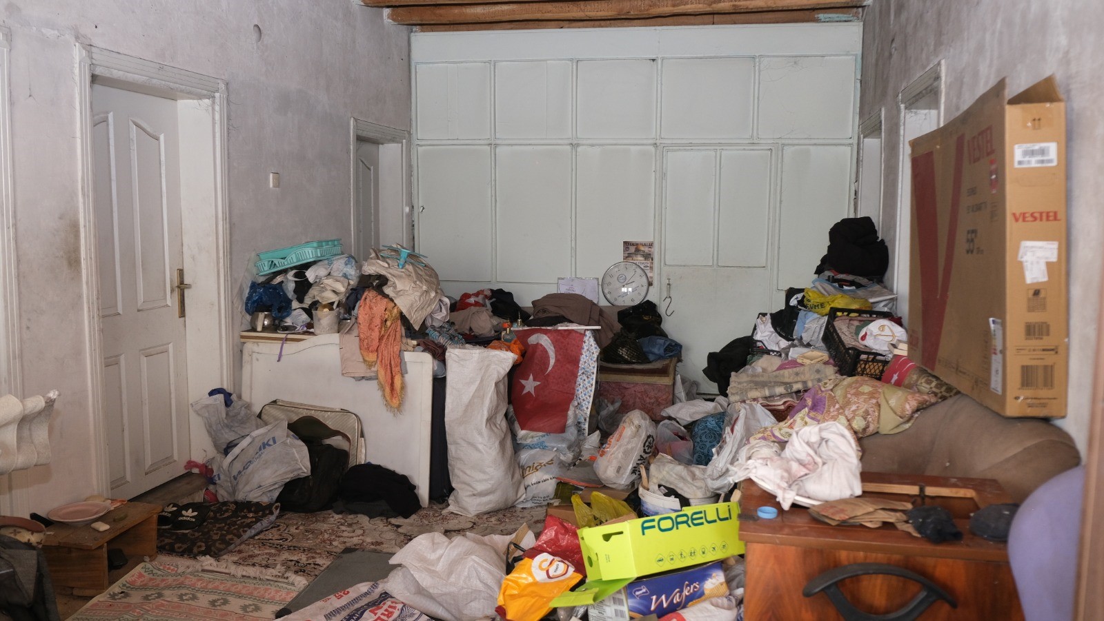 Edinilen bilgilere göre, Sorgun Belediyesi Zabıta Müdürlüğü’ne yapılan ihbar üzerine ekipler belirtilen adrese gitti. Komşuların kötü koku ve hijyen endişesi nedeniyle şikayet ettiği evde yapılan incelemede, uzun yıllardır biriktirilen eşyalarla karşılaşıldı. Evde yalnız yaşadığı öğrenilen 44 yaşındaki Fatih Keskin’in yaklaşık 6 yıl boyunca eline geçen çeşitli eşyaları ve geri dönüşüm malzemelerini depoladığı belirtildi.