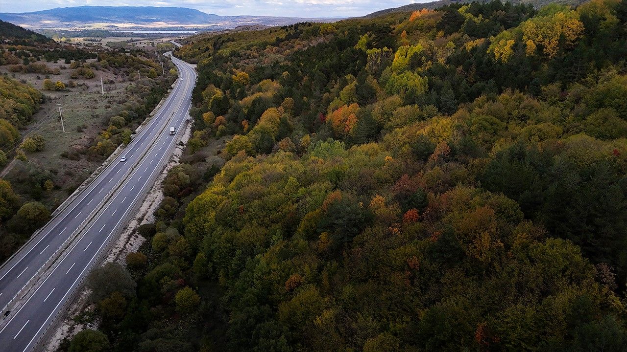 Türkiye’nin önemli kara yolu güzergahlarından biri olan Bolu Dağı D-100 kara yolu, sonbahar mevsimiyle adeta bir renk cümbüşüne dönüştü. Özellikle Bolu Dağı mevkii ile Yeniçağa ilçesi geçişinde, ağaçlar sarı, turuncu ve kızıl tonlara bürünerek sürücülere ve bölge halkına görsel bir şölen sunuyor.