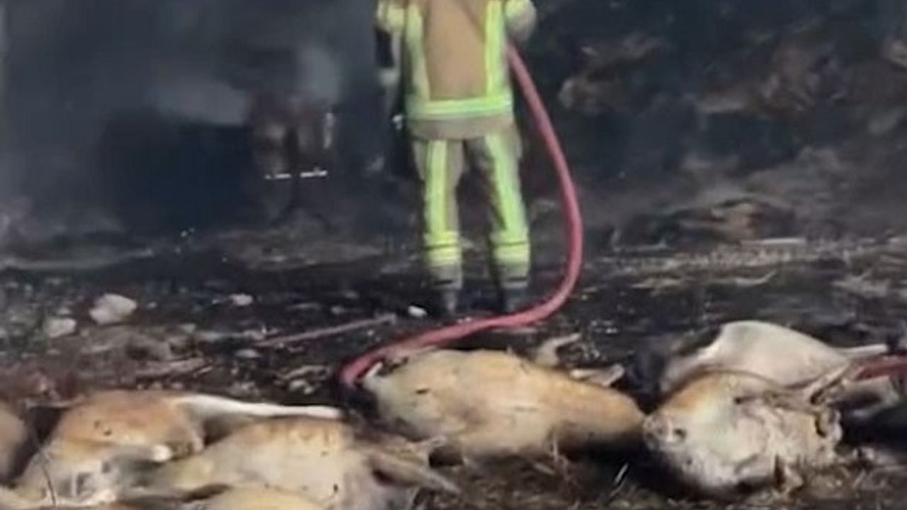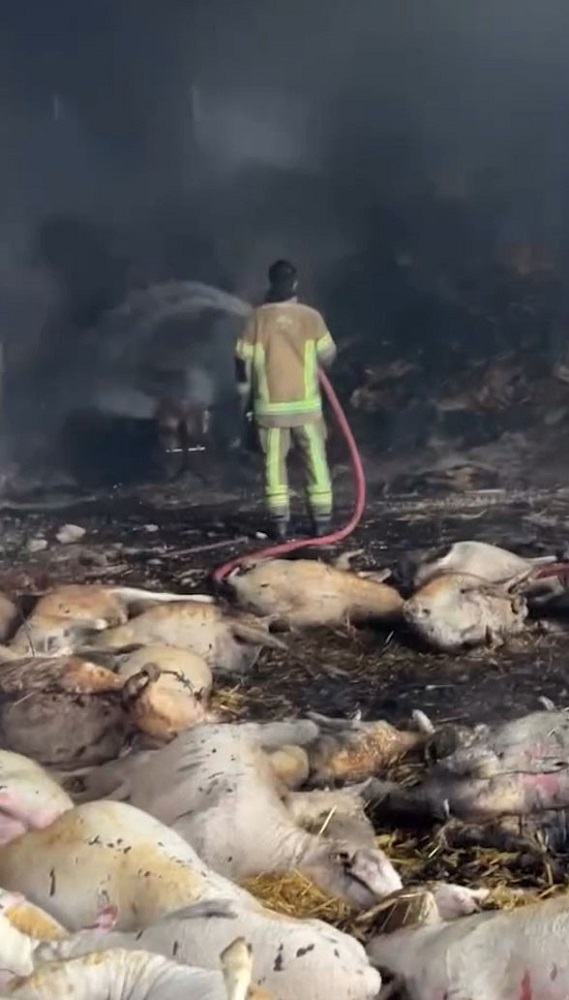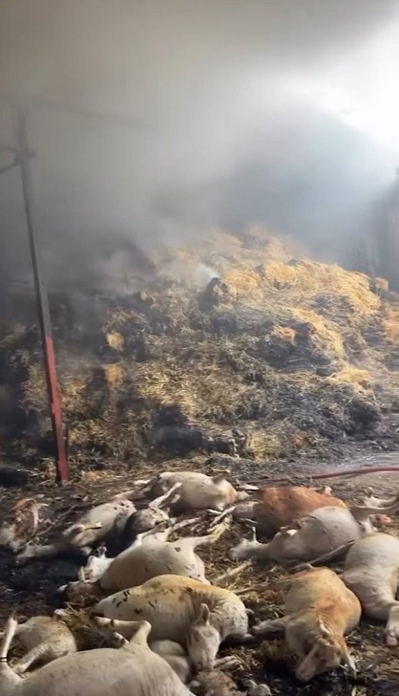 Yangın sırasında ahırda bulunan yaklaşık 50 koyun ve 120 kuzu telef oldu. Ayrıca 2 bin saman balyası da alevler nedeniyle kullanılamaz hale geldi. İhbar üzerine bölgeye sevk edilen itfaiye ekipleri, iki araçla yangını kontrol altına aldı ve soğutma çalışmalarına başladı.
