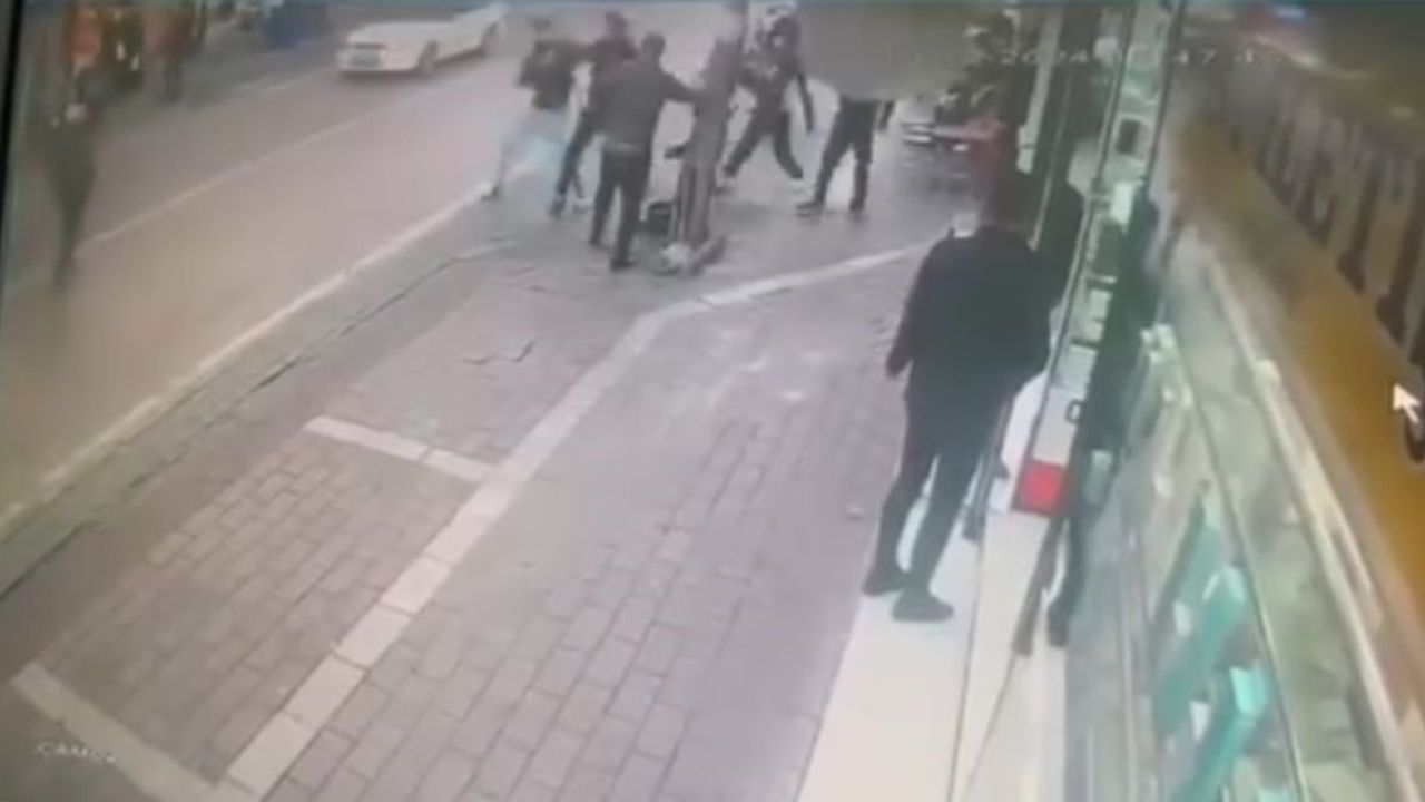 Kavganın görüntüleri, yakındaki bir işyerine ait güvenlik kamerasına yansıdı. Görüntülerde, tarafların tekme ve yumruklarla birbirlerine saldırdığı, çevredeki vatandaşların müdahale etmekte zorlandığı anlar yer alıyor. Güvenlik kameralarına yansıyan kavga, bölgedeki bazı işyerlerinin camlarını da kırdı.