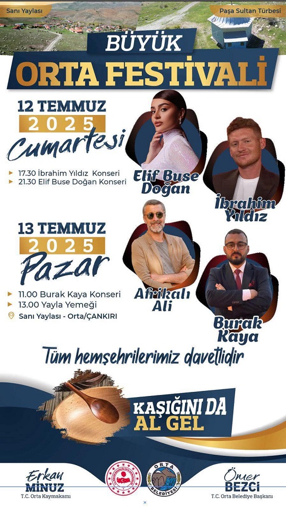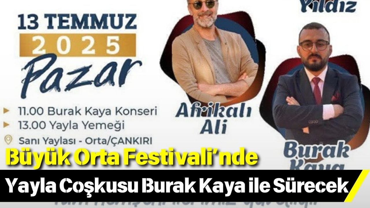 ÖZEL HABER/ Çankırı’nın Orta ilçesinde düzenlenen Büyük Orta Festivali, 13 Temmuz Pazar günü Sani Yaylası’nda Burak Kaya konseriyle devam ediyor.