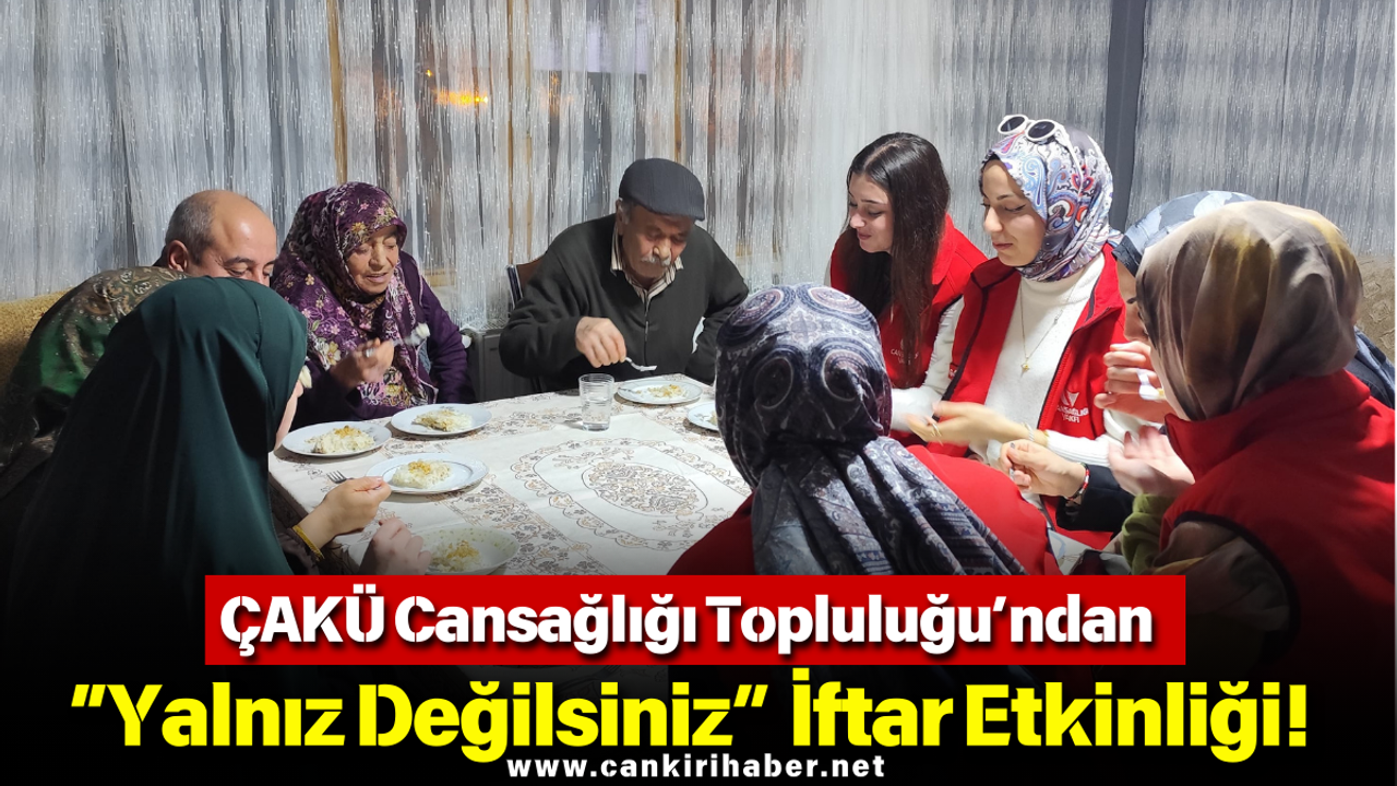 Çankırı Karatekin Üniversitesi (ÇAKÜ) Cansağlığı Topluluğu, “Yalnız Değilsiniz İftar Etkinliği” ile Ramazan ayının paylaşma ve dayanışma ruhunu yaşattı. Topluluk üyeleri, gönüllü öğrenciler ve ÇAKÜ Sağlık, Kültür ve Spor Daire Başkanı Halil Yetim ile birlikte yaşlı bir çifti evlerinde ziyaret ederek iftar programı düzenledi.