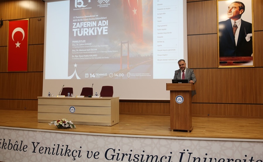 15 Temmuz Demokrasi ve Milli Birlik Günü Anma Etkinlikleri kapsamında ÇAKÜ Ahmet Yesevi Konferans Salonu’nda “Zaferin Adı Türkiye” Paneli gerçekleştirildi.#15Temmuz@DrMevlutKaratas pic.twitter.com/CzRHB5oVWN