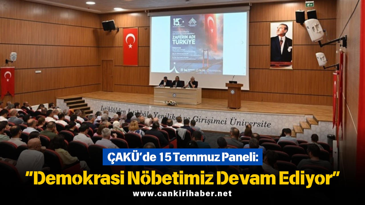 Çankırı Karatekin Üniversitesi (ÇAKÜ), 15 Temmuz Demokrasi ve Millî Birlik Günü Anma Etkinlikleri kapsamında anlamlı bir panel düzenledi. “Zaferin Adı Türkiye” başlığıyla gerçekleştirilen panel, üniversitenin Ahmet Yesevi Konferans Salonu’nda yapıldı. Etkinlik, saygı duruşu ve İstiklal Marşı'nın ardından Uluyazı Camii İmam Hatibi tarafından okunan Kur’an-ı Kerim tilavetiyle başladı. Tilavetin ardından 15 Temmuz şehitleri başta olmak üzere tüm şehitler için dualar edildi.