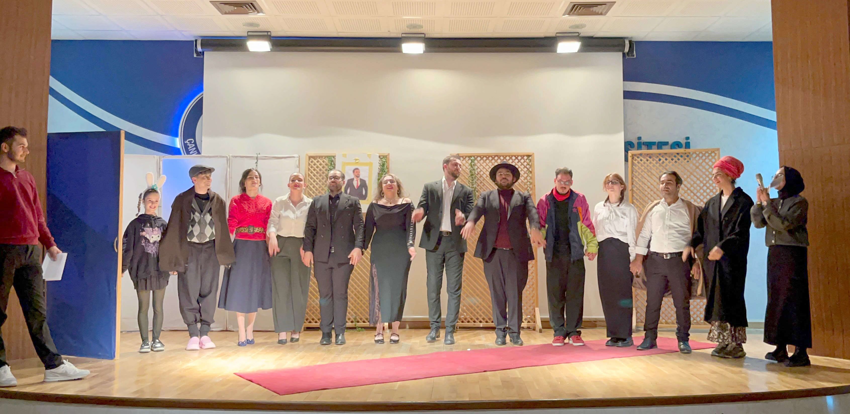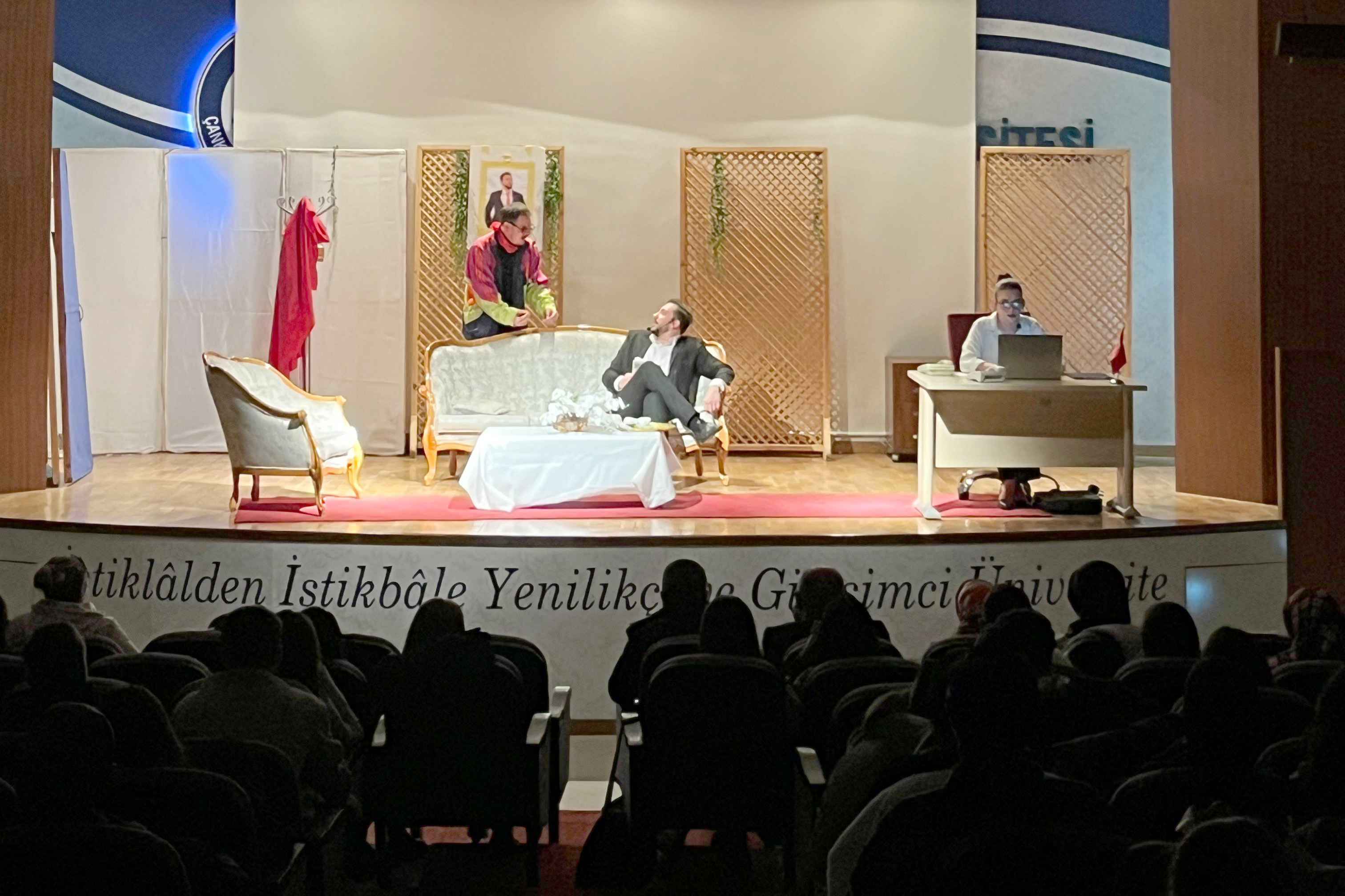 ÇAKÜ Rektörlük Konferans Salonu’nda sahnelenen oyunda salonun tamamen dolması, üniversite öğrencilerinin sanata olan ilgisini bir kez daha gözler önüne serdi. İzleyiciler, oyun boyunca sergilenen performansları ilgiyle takip ederken, sahnedeki mizahi anlatım sık sık alkışlarla karşılık buldu.