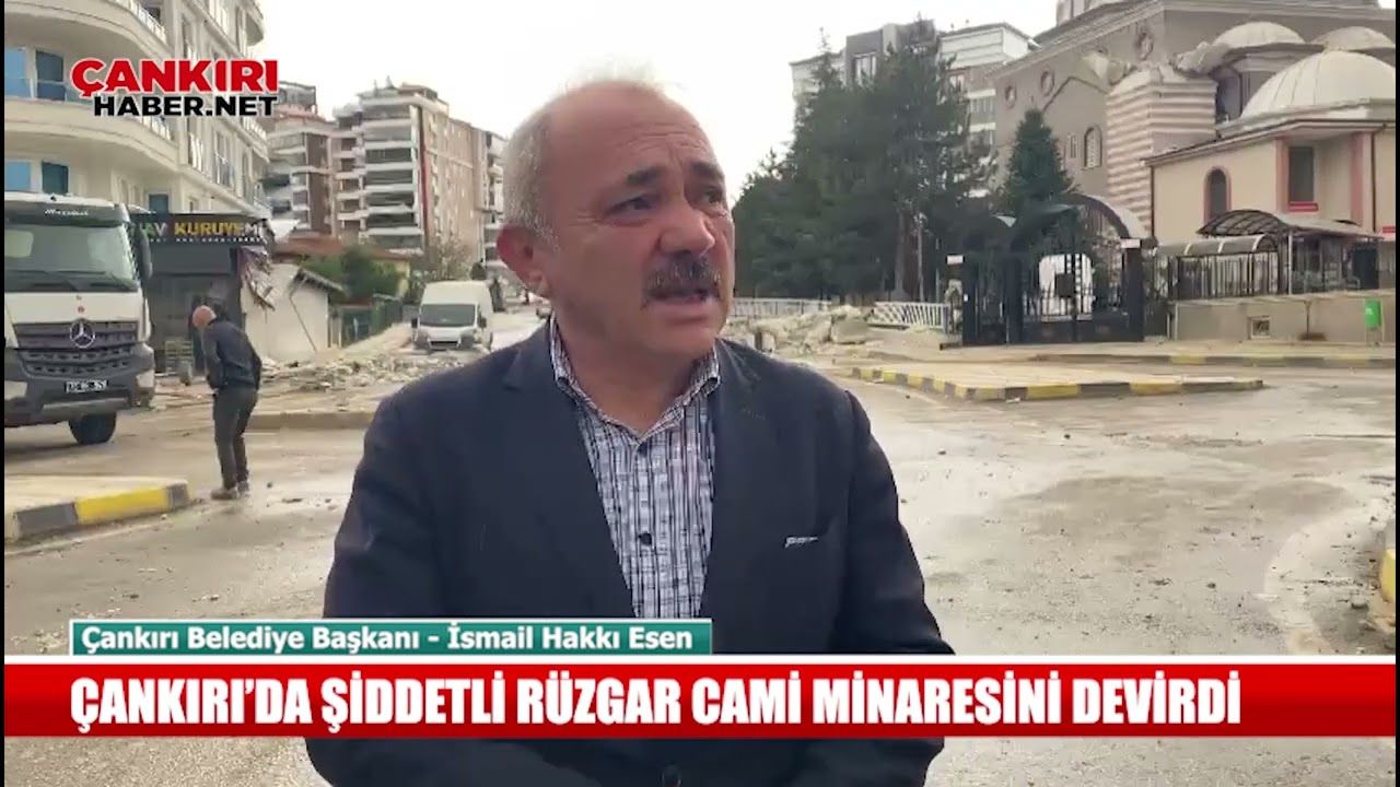 Çankırı'da halk arasında çift minareli cami olarak bilinen Yenimahalle ve Bademlik Mahalleleri bölgesinde bulunan Bademlik Camii'nin minaresi şiddetli rüzgar nedeniyle devrildi.