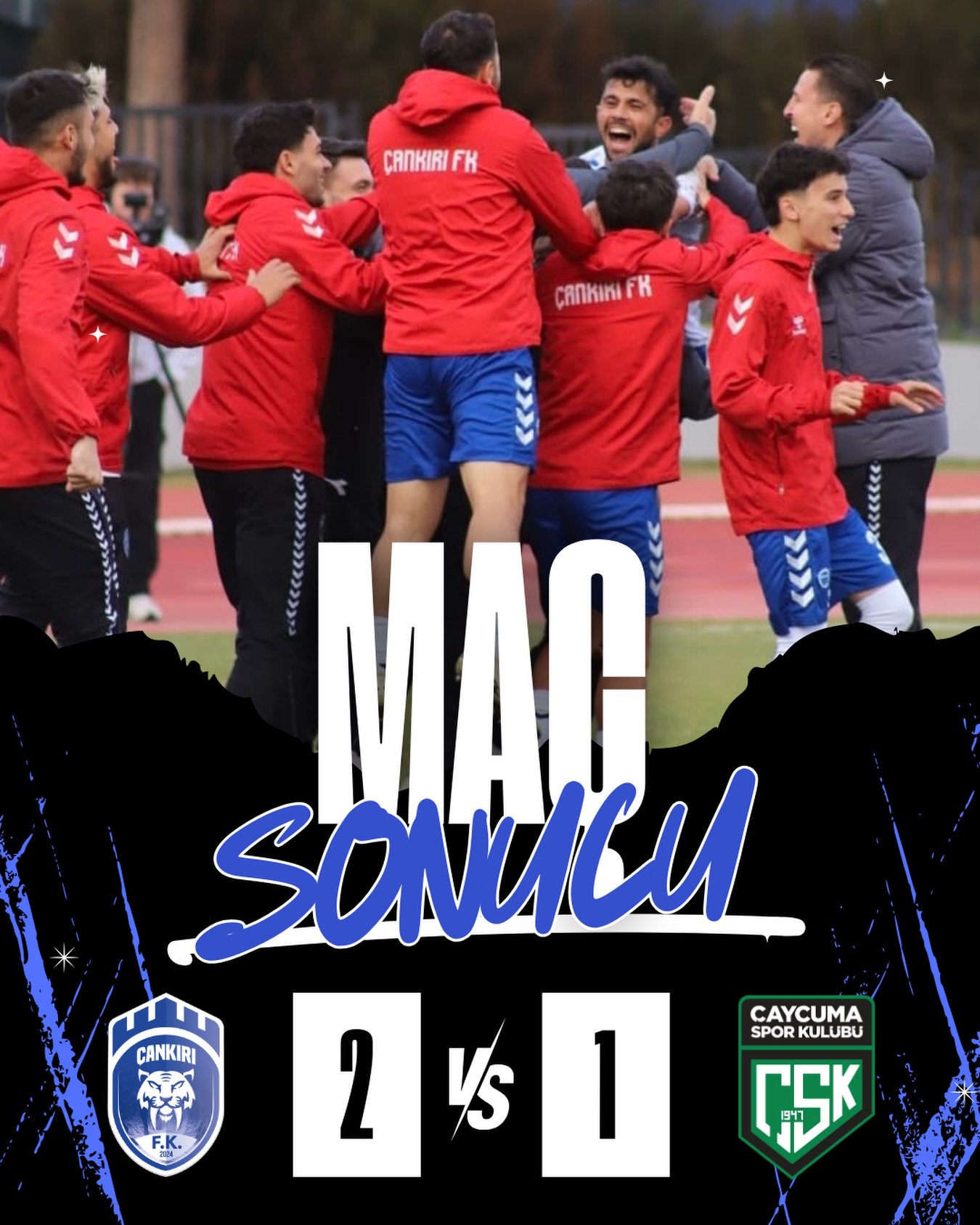 İkinci yarıda hücum varyasyonlarını artıran ve rakip savunmasını hataya zorlayan Çankırı FK, bulduğu fırsatları gole çevirerek üstünlüğü ele geçirdi. AVS Çaycumaspor her ne kadar beraberlik için baskısını artırsa da Çankırı FK skoru korumayı başardı ve sahadan 2-1’lik kritik bir galibiyetle ayrıldı.