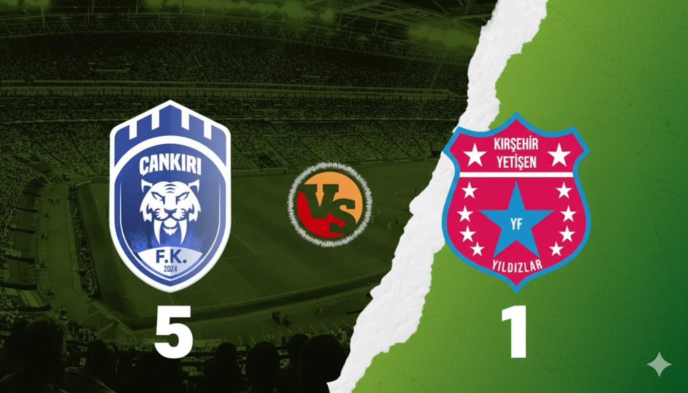 Bölgesel Amatör Lig 4. Grup 7. haftasında Çankırı Atatürk Stadyumu, nefes kesen bir futbol şölenine sahne oldu. Çankırı Futbol Kulübü, güçlü oyunuyla Kırşehir Yetişen Yıldızlar’ı 5-1 mağlup ederek kritik bir galibiyete imza attı ve avarajla liderlik koltuğuna yükseldi.