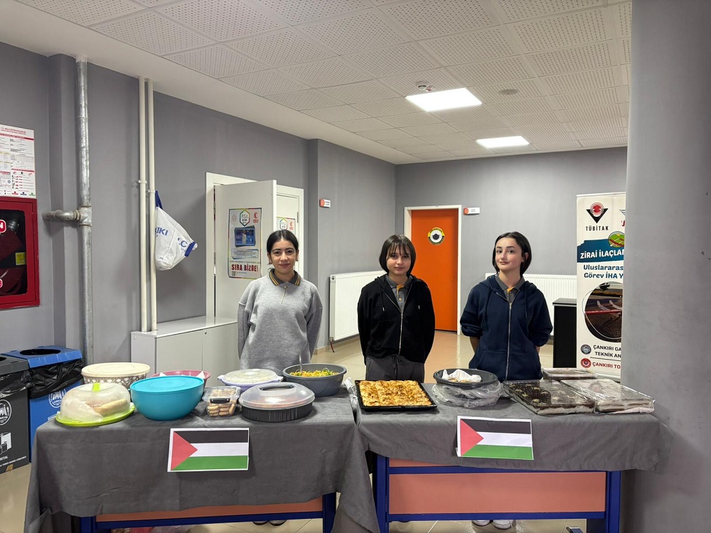 Çankırı Gazi Mesleki ve Teknik Anadolu Lisesi, “Çevreme Duyarlıyım, Değerlerime Sahip Çıkıyorum (ÇEDES)” Projesi kapsamında Gazze’ye destek olmak amacıyla anlamlı bir kermes düzenledi. Okul bahçesinde gerçekleştirilen etkinlikte öğrenciler, öğretmenler ve veliler tarafından hazırlanan yiyecek ve içecekler satışa sunuldu.