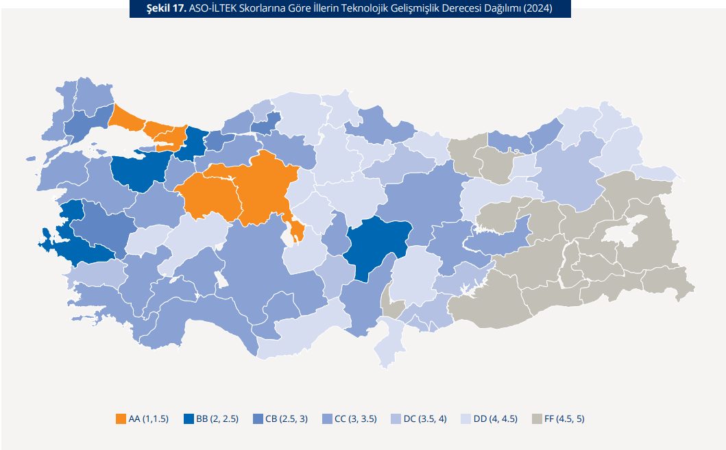 ASO tarafından yayımlanan analizde; illerin teknolojiye uyum kabiliyeti, araştırma ve yenilikçilik kapasitesi, dijital altyapı düzeyi, teknolojik çıktılar ve nitelikli insan kaynağı gibi birçok kriter kapsamlı biçimde değerlendirildi. Çalışma, Türkiye’nin teknoloji odaklı ekonomik büyüme hedefleri doğrultusunda, yerel ve ulusal politika yapıcılar için önemli bir veri seti sunmayı amaçlıyor.