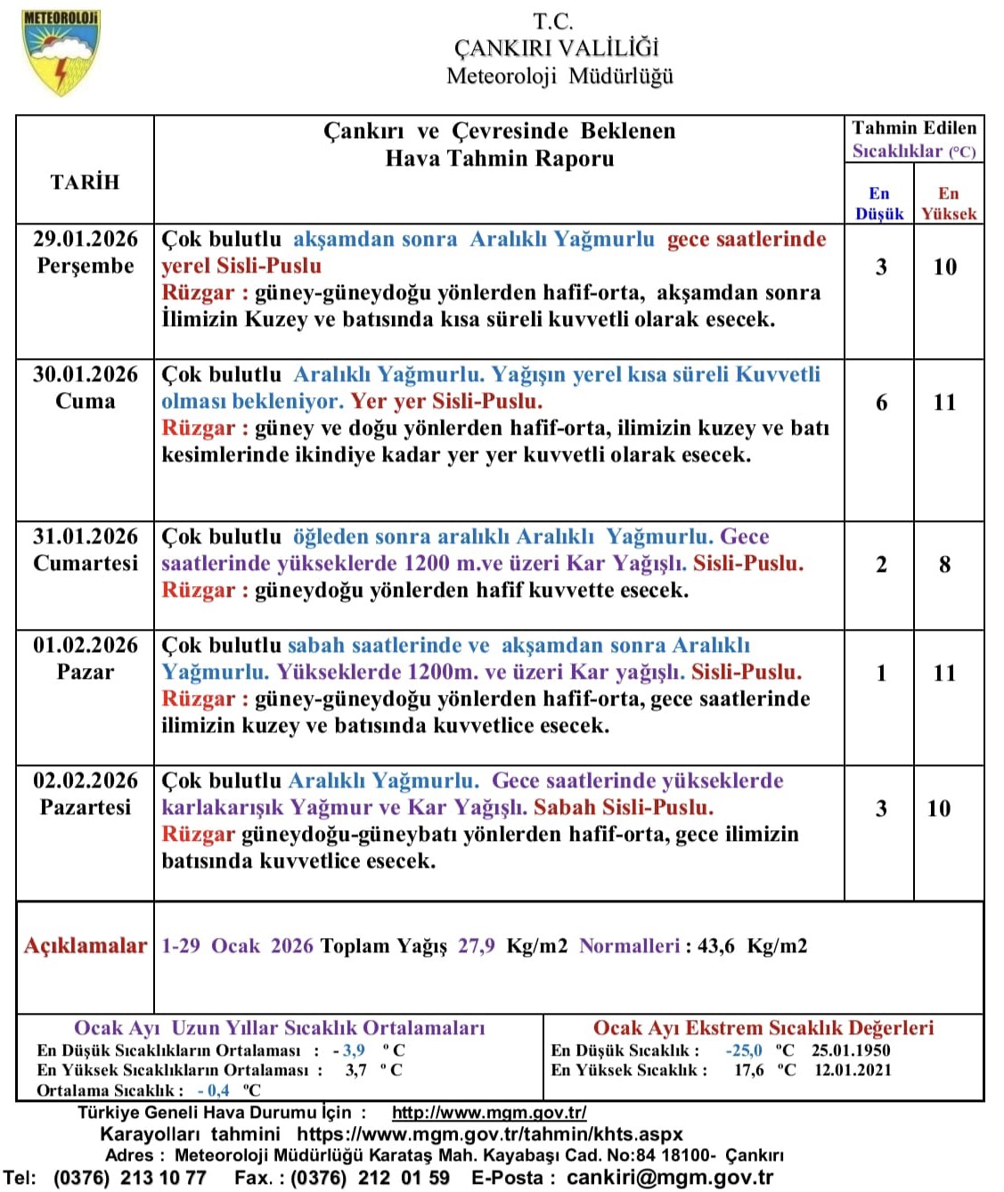 Çankırı genelinde beklenen kuvvetli rüzgâr ve fırtına nedeniyle, kamu kurumları ve ilgili birimlerin teyakkuz halinde olduğu öğrenilirken, olası olumsuzluklara karşı gerekli koordinasyonun sağlandığı bildirildi. Valilik, vatandaşların can ve mal güvenliği açısından uyarıları dikkate almalarının hayati önem taşıdığını vurguladı.