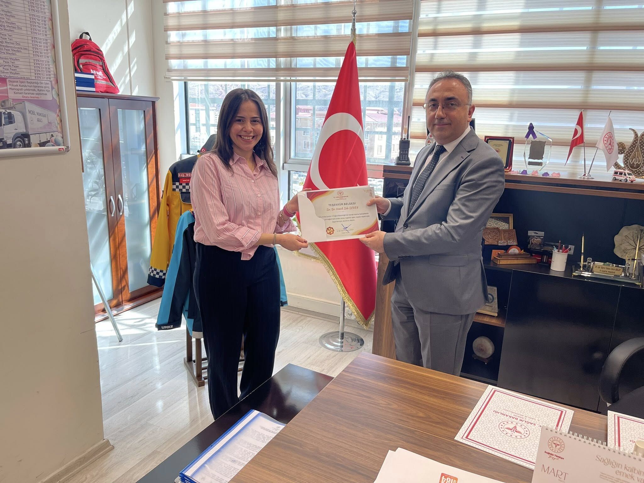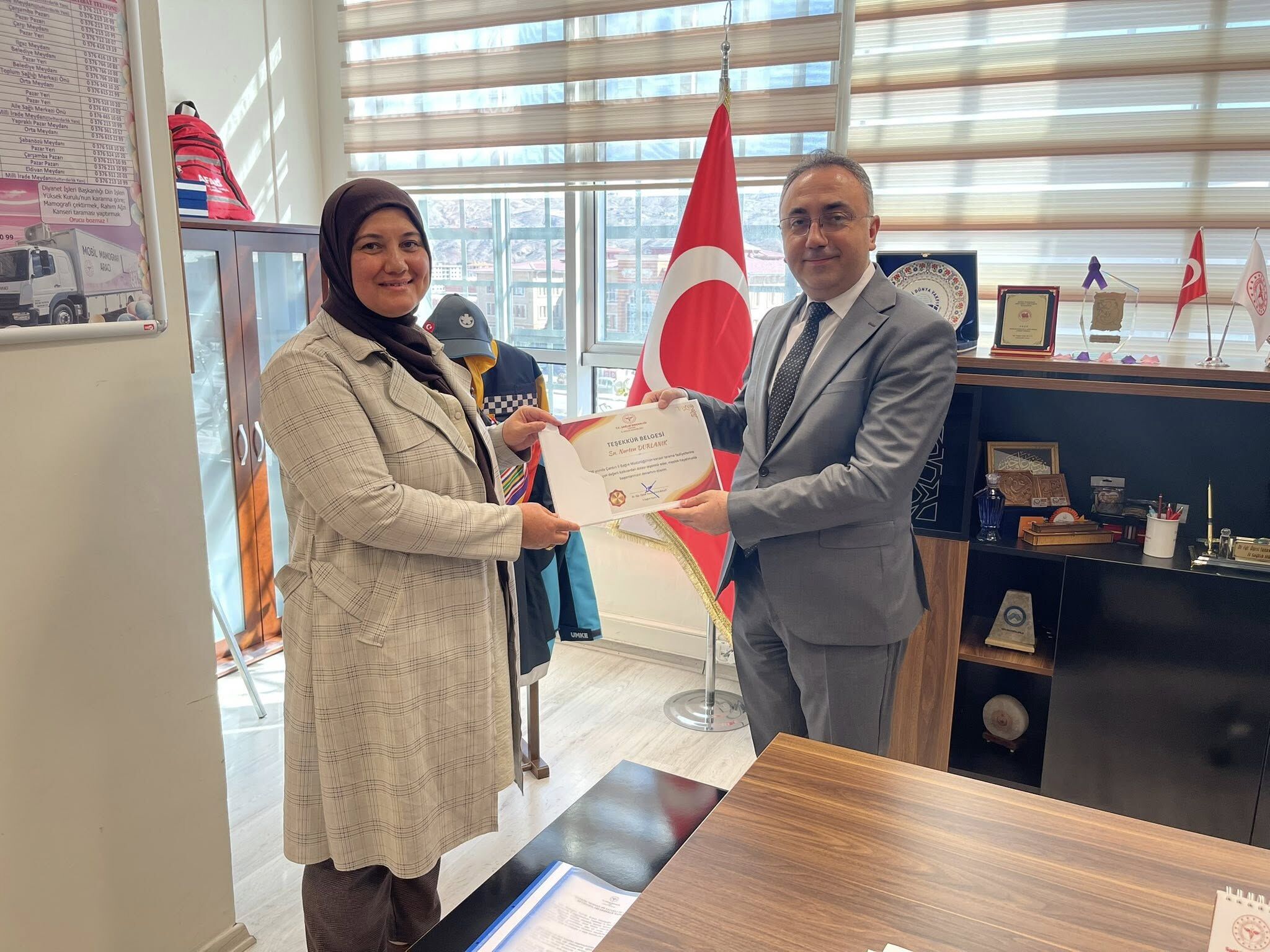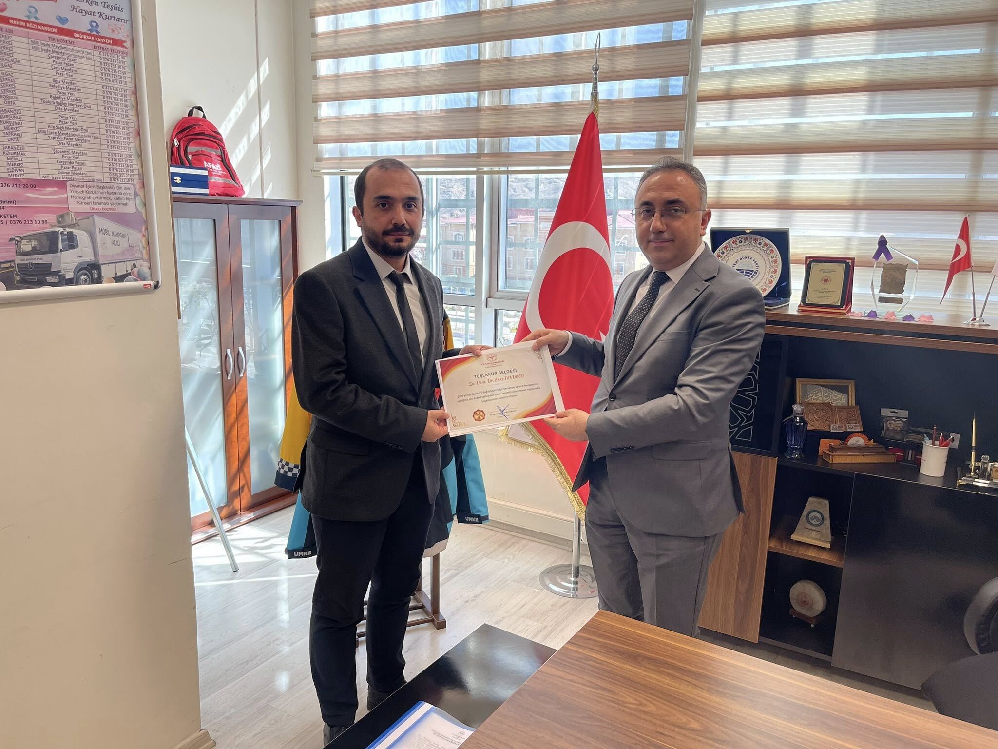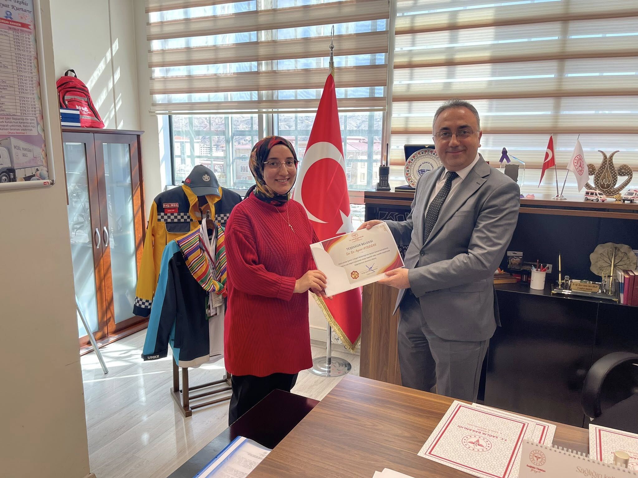 Elde edilen bu başarı dolayısıyla çalışmalarda görev alan sağlık personeline teşekkür belgesi takdim edildi. Belgeler, Yunus Emre Bulut tarafından Başhekim – V. TSM Başkanı Enes Tavukcu, Aynur Aydoğan, Irmak Sıla Seven, Nurten Durlanık, Songül Karagöz, Songül Demir, Büşra Sevgi Orman ve Merve Şahin’e verildi.