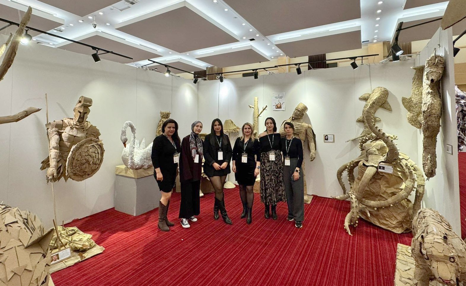 Fakülte öğretim üyesi Doç. Dr. Dilek Öcalan’ın “sıfır atık” vizyonu çerçevesinde yürüttüğü proje kapsamında, Eko-Art Geri Dönüşüm Topluluğu üyeleri ve öğrenciler tarafından atık malzemelerden üretilen heykeller fuarda sergilendi. Kâğıt, plastik ve poşet atıklarının kullanıldığı eserler, ziyaretçilerden ilgi gördü.