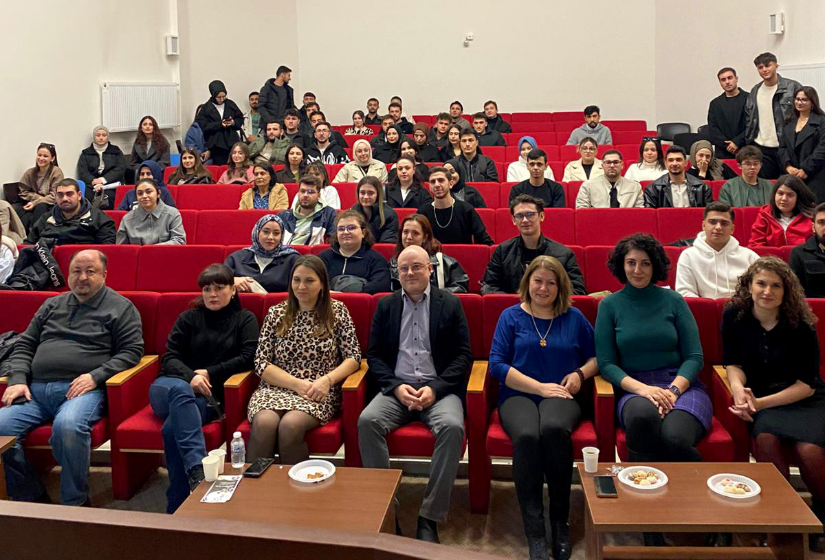 Programın ikinci oturumunda ise Doç. Dr. Aydın Beraha, “Duygular ve İş Yaşamı” başlıklı sunumunda, duyguların profesyonel hayattaki karar alma süreçlerine ve başarıya olan etkilerini değerlendirdi. Beraha, iş yaşamında duygusal farkındalığın önemine dikkat çekerek, öğrencilerin kariyer yolculuklarında bu beceriyi geliştirmelerinin gerekliliğini vurguladı.