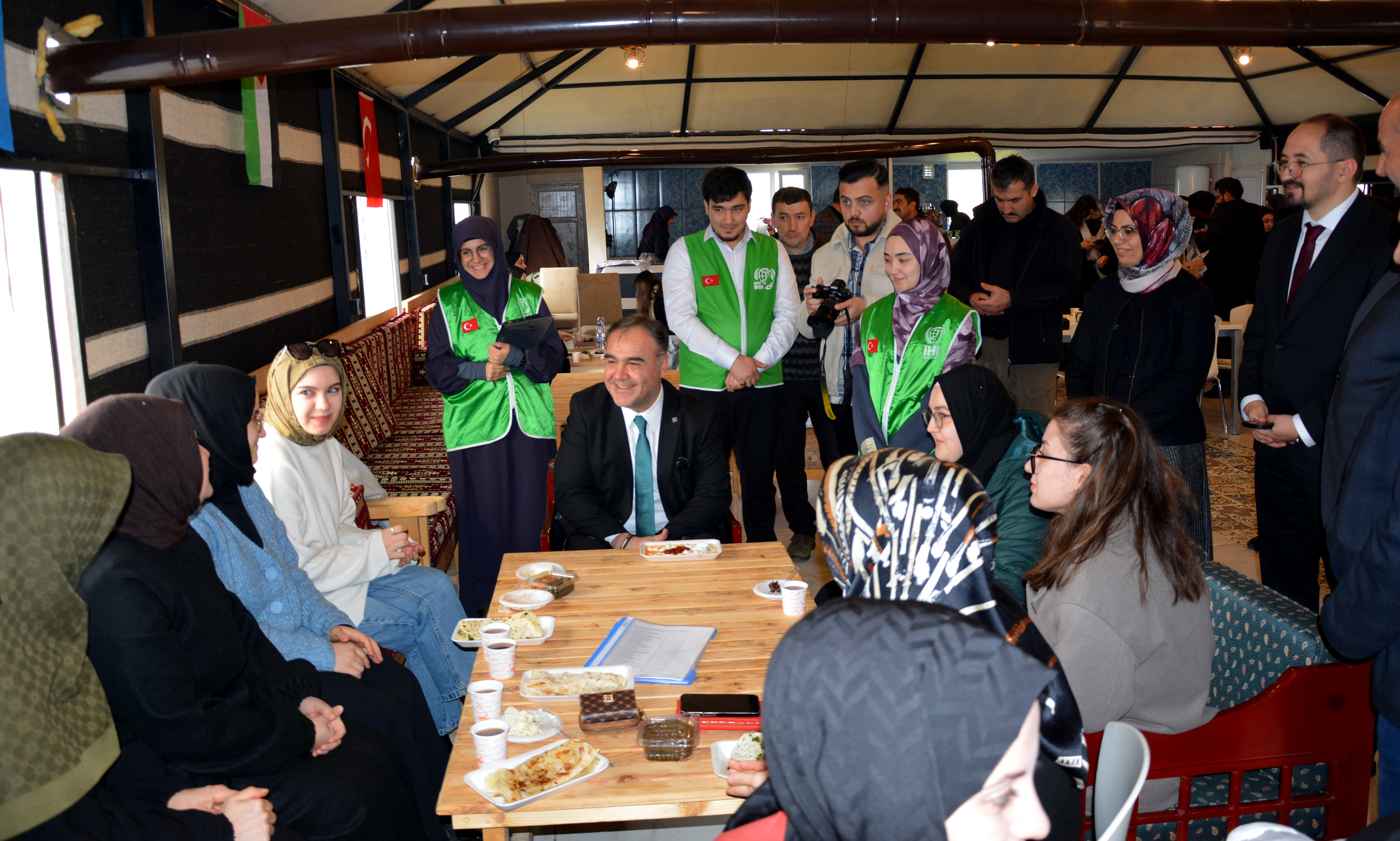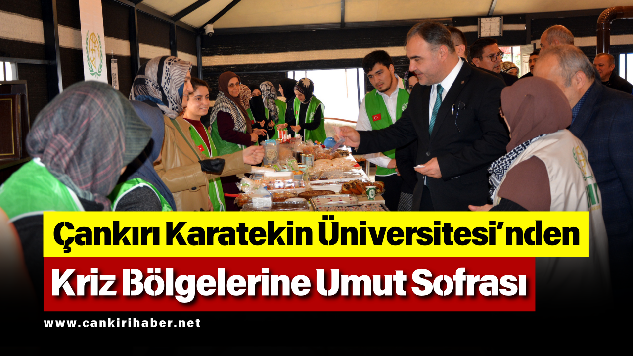 Çankırı Karatekin Üniversitesi’nde, acil kriz bölgelerinde yaşayan ihtiyaç sahiplerine destek olmak amacıyla anlamlı bir etkinlik gerçekleştirildi. ÇAKÜ İnsan Hak ve Hürriyetleri Topluluğu ile İHH İnsani Yardım Vakfı Çankırı Şubesi iş birliğiyle “Acil Kriz Bölgeleri Yararına Gıda Kermesi” düzenlendi. Uluyazı Yerleşkesi’ndeki Selçuklu Otağı Çadırı’nda gerçekleştirilen kermeste, İHH gönüllülerinin hazırladığı çeşitli yiyecekler öğrencilere ve üniversite personeline sunularak bağış toplandı.