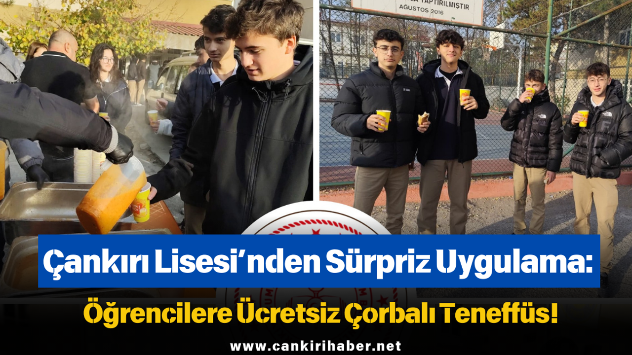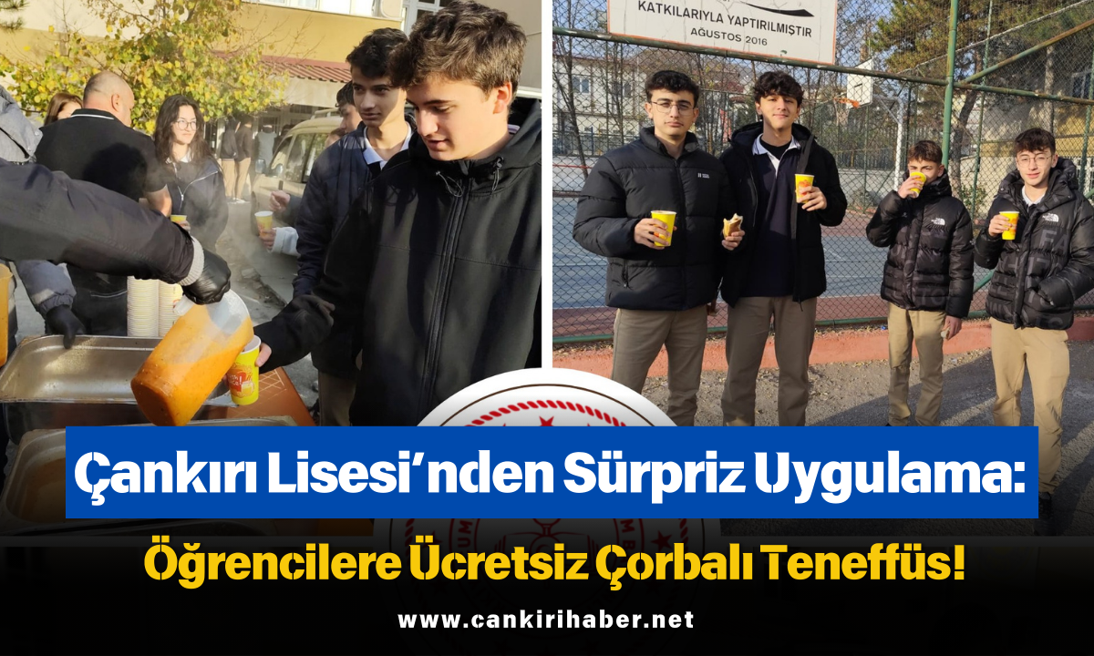 Çankırı Lisesi, öğrencilerde sağlıklı beslenme farkındalığını artırmak amacıyla anlamlı bir etkinliğe imza attı. Okulda birinci teneffüste yapılan ücretsiz çorba ikramı, hem öğrencilerden hem de öğretmenlerden yoğun ilgi gördü. Etkinlik, Merkez Esnaf Lokantası sahibi Erkan Efe’nin gönüllü desteğiyle hayata geçirilirken, okul idarecileri ve öğretmenlerin de aktif katkılarıyla organize edildi.