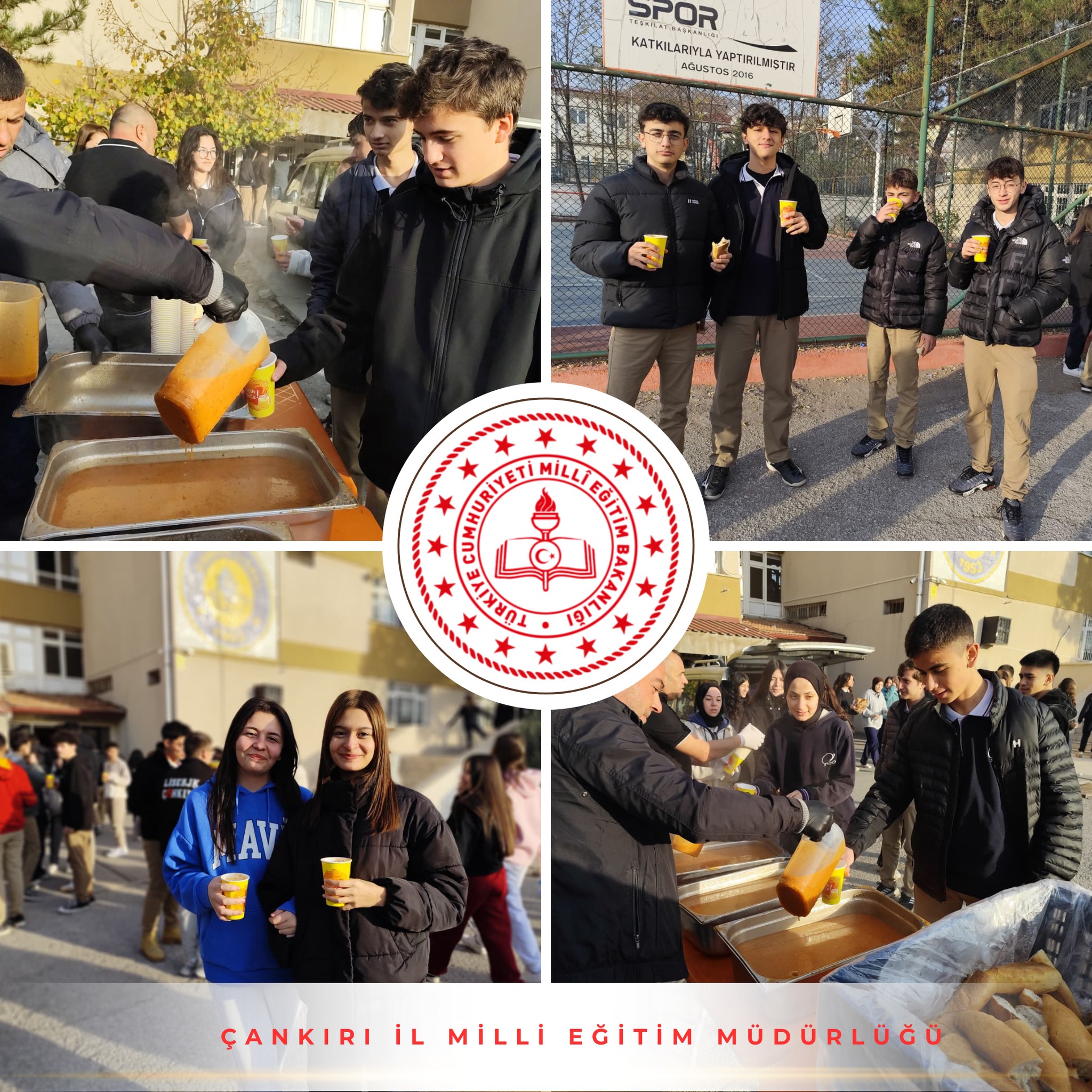 Sabah saatlerinde hazırlanan sıcak çorbalar, öğrencilerin teneffüs alanında kurulan noktada dağıtıldı. Soğuk havalarda öğrencilerin güne daha zinde ve sağlıklı başlaması hedeflenirken, bu tür uygulamaların özellikle gençlerin beslenme alışkanlıklarına olumlu katkı sağlaması amaçlandı. Çorba ikramı sırasında öğretmenler ve idareciler öğrencilerle sohbet ederek sağlıklı yaşamın önemine dikkat çekti.