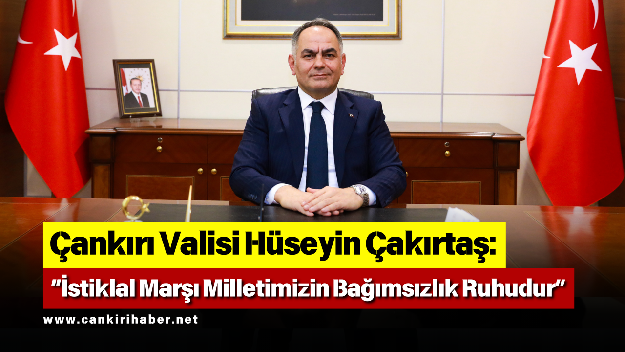 Çankırı Valisi Hüseyin Çakırtaş, İstiklal Marşı’nın Türkiye Büyük Millet Meclisi tarafından kabul edilişinin yıl dönümü ve Mehmet Akif Ersoy’u Anma Günü dolayısıyla bir mesaj yayımladı.