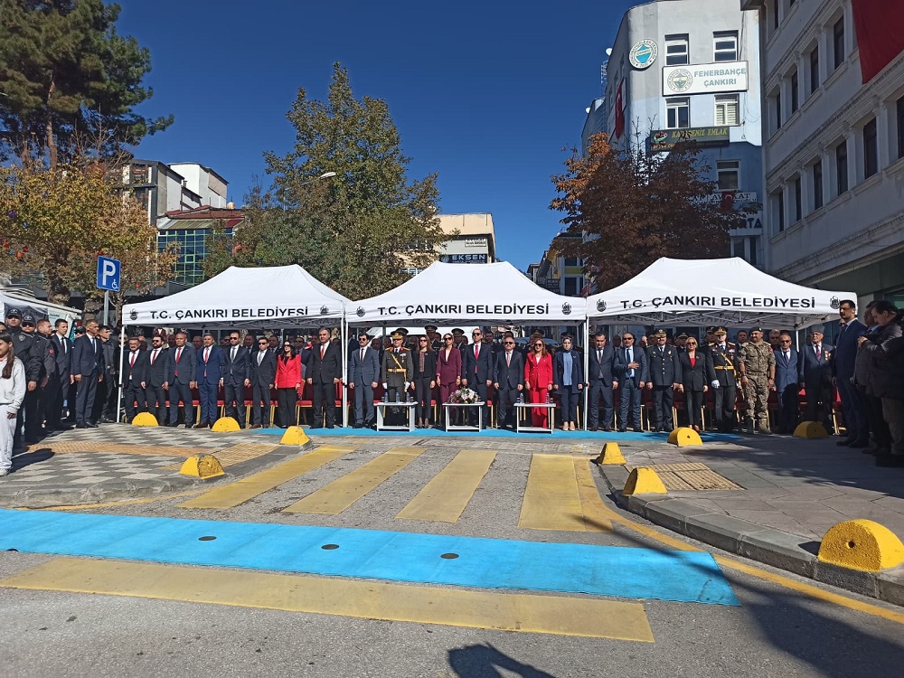 Saygı duruşu ve İstiklal Marşı’nın okunmasının ardından, Vali M. Fırat Taşolar günün anlam ve önemini belirten bir konuşma yaptı. Programda ayrıca öğrencilerin şiirleri, Çankırı Karatekin Üniversitesi Halk Oyunları Topluluğu’nun gösterisi ve Jandarma Komutanlığı’nın silahlı gösterisi yer alıyor. Tören geçişinin ardından gün boyu sürecek etkinlikler, akşam saatlerinde düzenlenecek Fener Alayı ile devam edecek. Migros önünden başlayacak yürüyüş, Fuar Yolu ve Atatürk Bulvarı üzerinden Anıt Alanı’nda sona erecek.