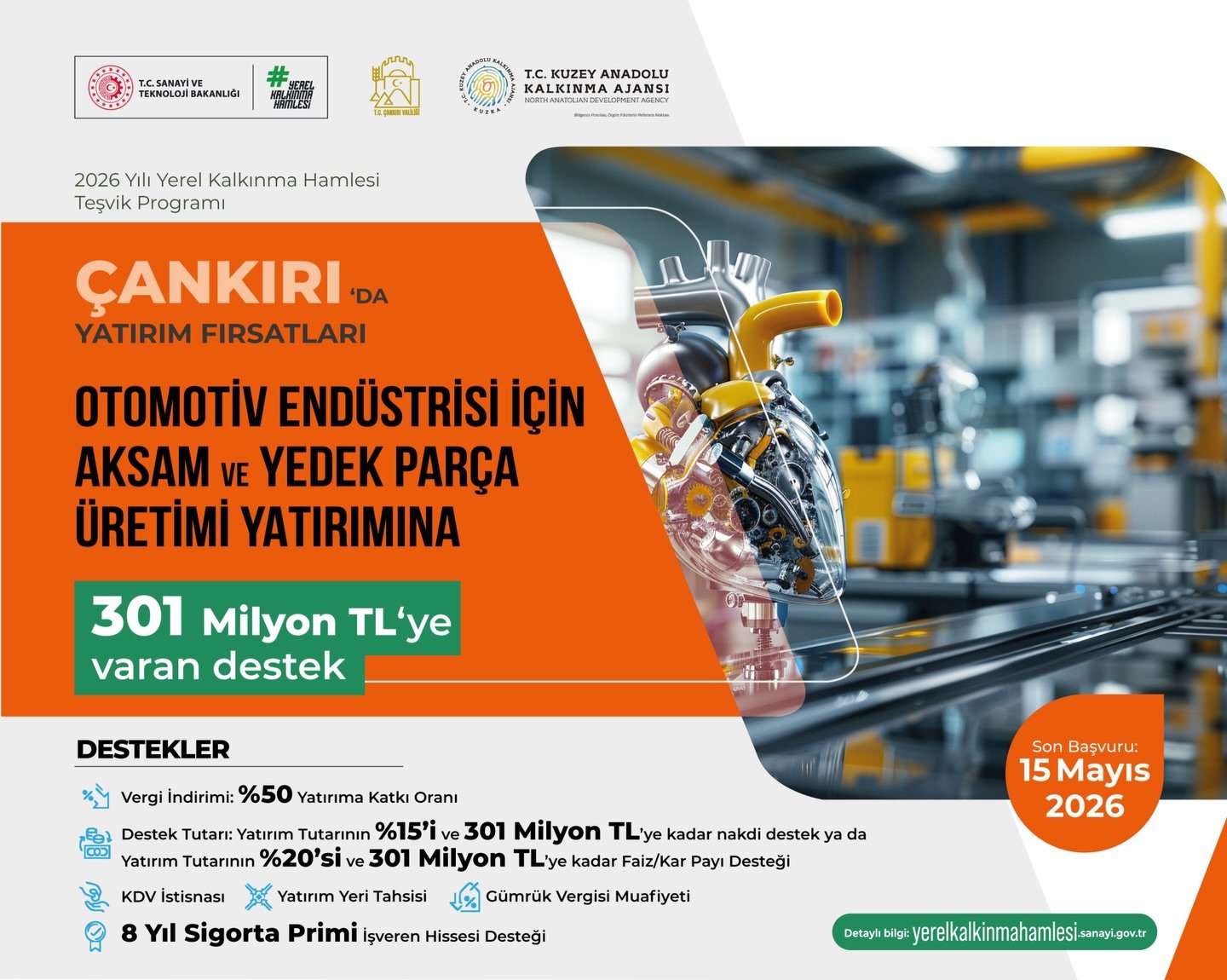 Çankırı Valiliği, otomotiv tedarik zincirine yönelik yeni yatırım teşviklerini duyurdu. “Yerel Kalkınma Hamlesi Teşvik Programı” kapsamında özellikle otomotiv endüstrisi için aksam ve yedek parça üretimine yönelik yatırımların destekleneceği bildirildi.