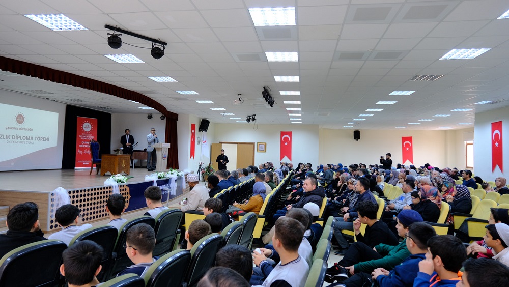 Çankırı İl Müftülüğü tarafından, hafızlık eğitimini başarıyla tamamlayan öğrenciler için anlamlı bir tören düzenlendi. Hacı Murad-ı Veli Ortaokulu Konferans Salonu’nda gerçekleştirilen “Hafızlık Diploma Töreni”nde, 34 öğrenci hafızlık belgelerini dualar eşliğinde teslim aldı.