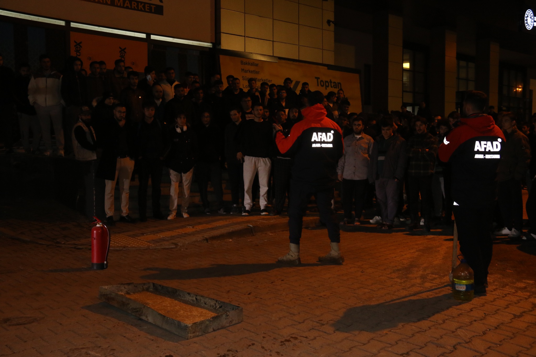 AFAD personeli önce yangın güvenliğinin temel prensiplerini anlatarak giriş yaptı. Ardından öğrenciler, senaryo gereği siren seslerinin duyulmasıyla binayı kontrollü şekilde boşalttı. Güvenli toplanma alanına geçiş süreci birebir denendi. Daha sonra belirlenen açık alanda yangın söndürme tüplerinin kullanımı, doğru tutuş ve atış teknikleri uygulamalı olarak öğrencilere gösterildi.