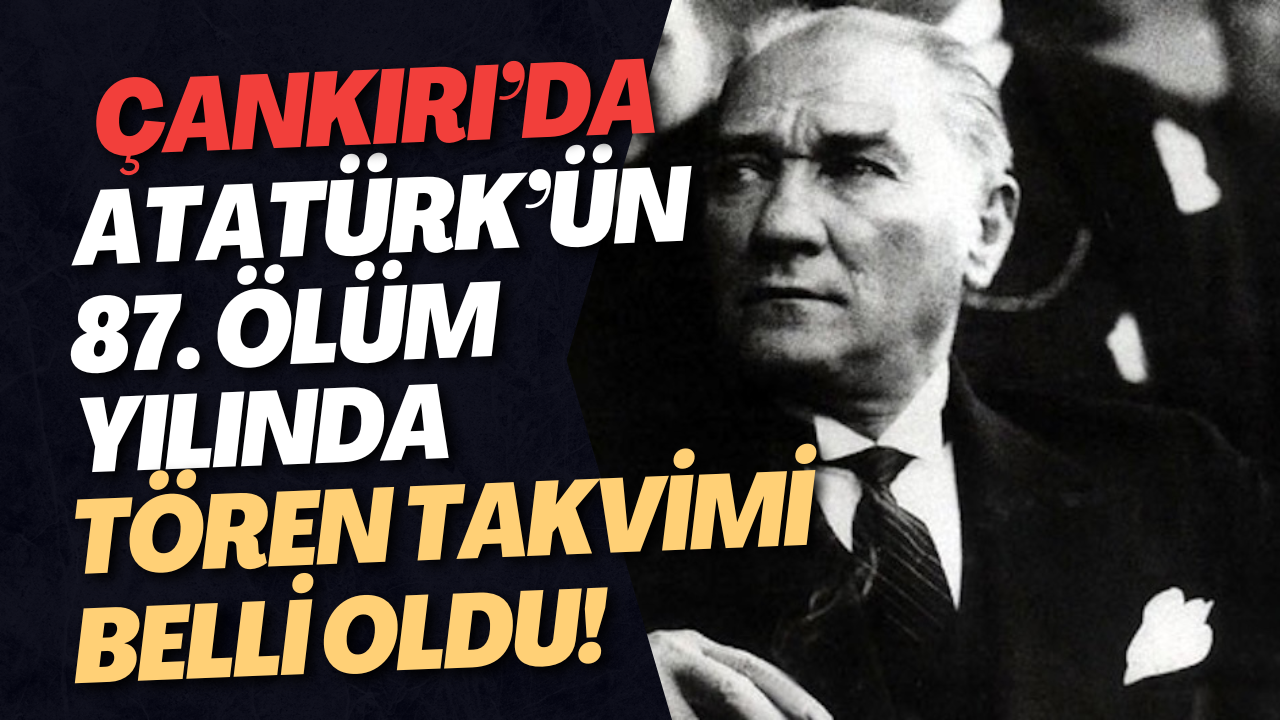 T.C. Çankırı Valiliği, Ulu Önder Mustafa Kemal Atatürk’ün ebediyete intikalinin 87. yılı dolayısıyla düzenlenecek 10 Kasım Atatürk’ü Anma Günü ve Atatürk Haftası programını duyurdu. 10-16 Kasım 2025 tarihleri arasında gerçekleştirilecek etkinlikler kapsamında kent genelinde çeşitli tören, sergi ve konferanslar düzenlenecek.