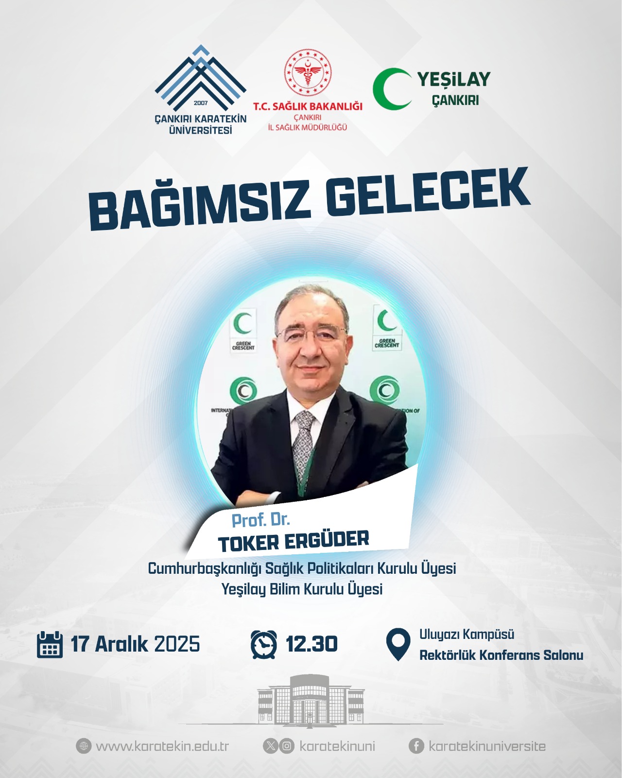Çankırı Karatekin Üniversitesi, Çankırı İl Sağlık Müdürlüğü ve Yeşilay Çankırı Şubesi iş birliğiyle “Bağımsız Gelecek” programı düzenleniyor. Toplumda bağımlılık konusunda farkındalık oluşturmayı amaçlayan program, 17 Aralık 2025 tarihinde Çankırı Karatekin Üniversitesi Uluyazı Kampüsü’nde gerçekleştirilecek.