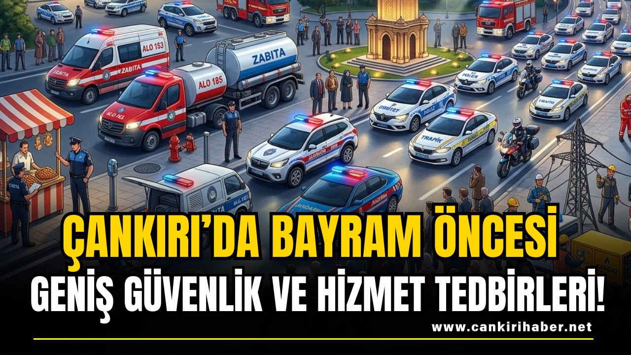 Çankırı’da Ramazan Bayramı’nın huzur ve güven ortamı içerisinde geçirilmesi amacıyla ilgili kurumlar tarafından kapsamlı tedbirler alındı. 20-21-22 Mart 2026 tarihlerini kapsayan bayram süresince şehir genelinde güvenlik, sağlık ve belediye hizmetlerinin kesintisiz şekilde sürdürüleceği bildirildi.