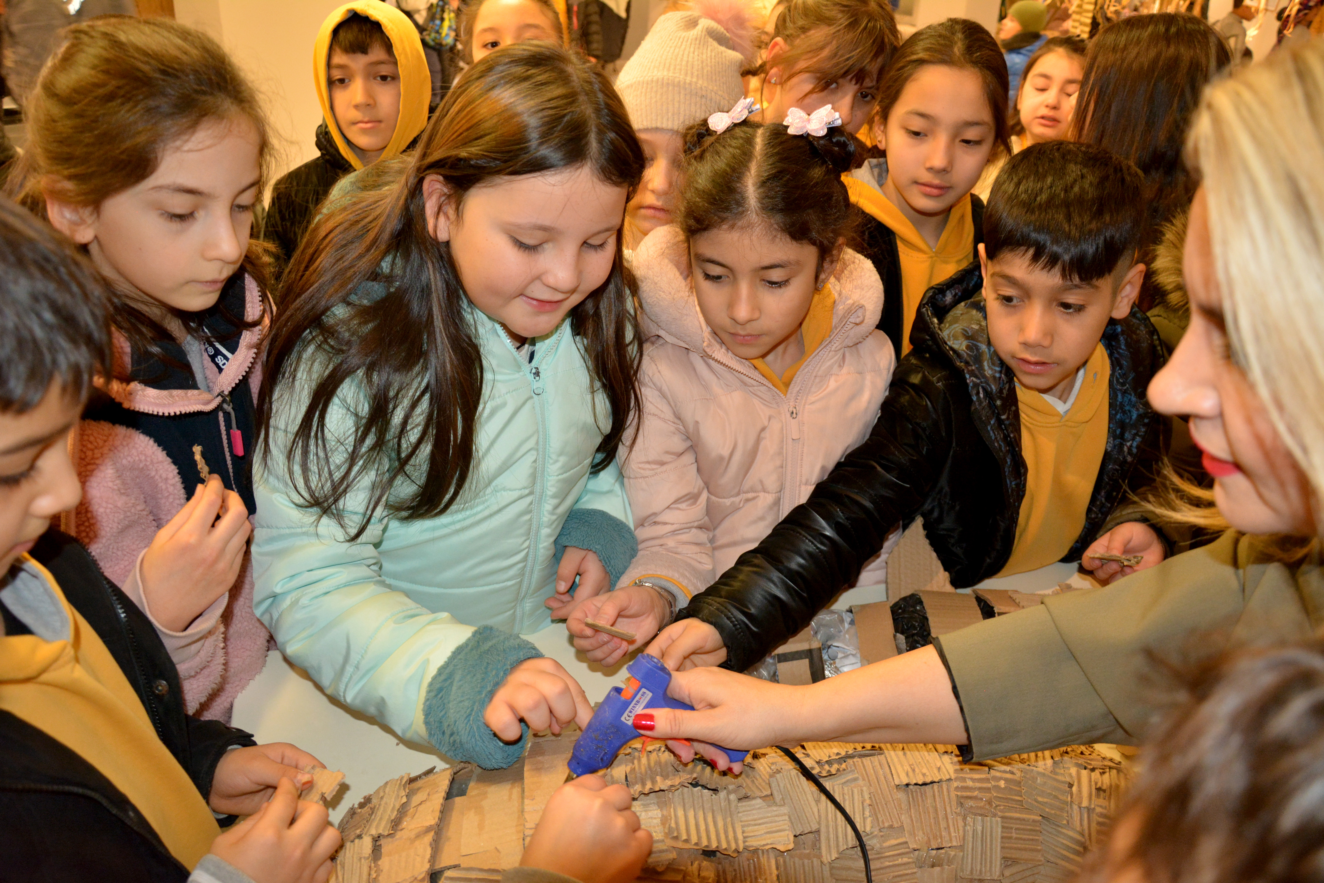 Ziyaretin devamında ise öğrenciler için uygulamalı bir atölye çalışması gerçekleştirildi. Doç. Dr. Dilek Öcalan, heykel yapım aşamalarını adım adım anlatarak minik öğrencilerle birlikte küçük ölçekli çalışmalar yaptı. Atölye sayesinde öğrenciler, hem sanatsal üretim sürecini deneyimledi hem de atık malzemelerin yeniden değerlendirilebileceğini uygulamalı olarak öğrendi.