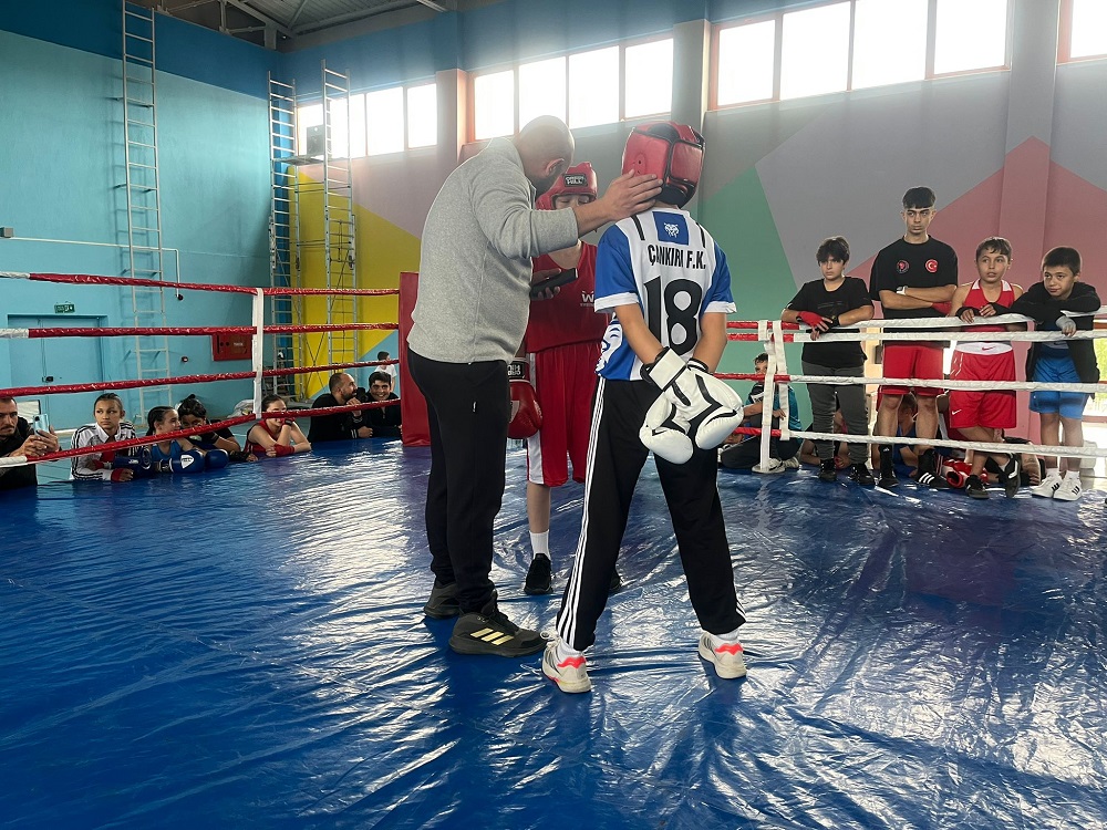 ÖZEL HABER/ 29 Ekim Cumhuriyet Bayramı’nın 102. yılı kutlamaları kapsamında, Çankırı’da dostluk ve kardeşlik dolu bir spor etkinliği gerçekleştirildi. Hamide Bıçkın Spor Salonu’nda düzenlenen organizasyonda, Çankırı, Çorum ve Aksaray illerinden gelen boksörler ringe çıkarak centilmence mücadele etti.